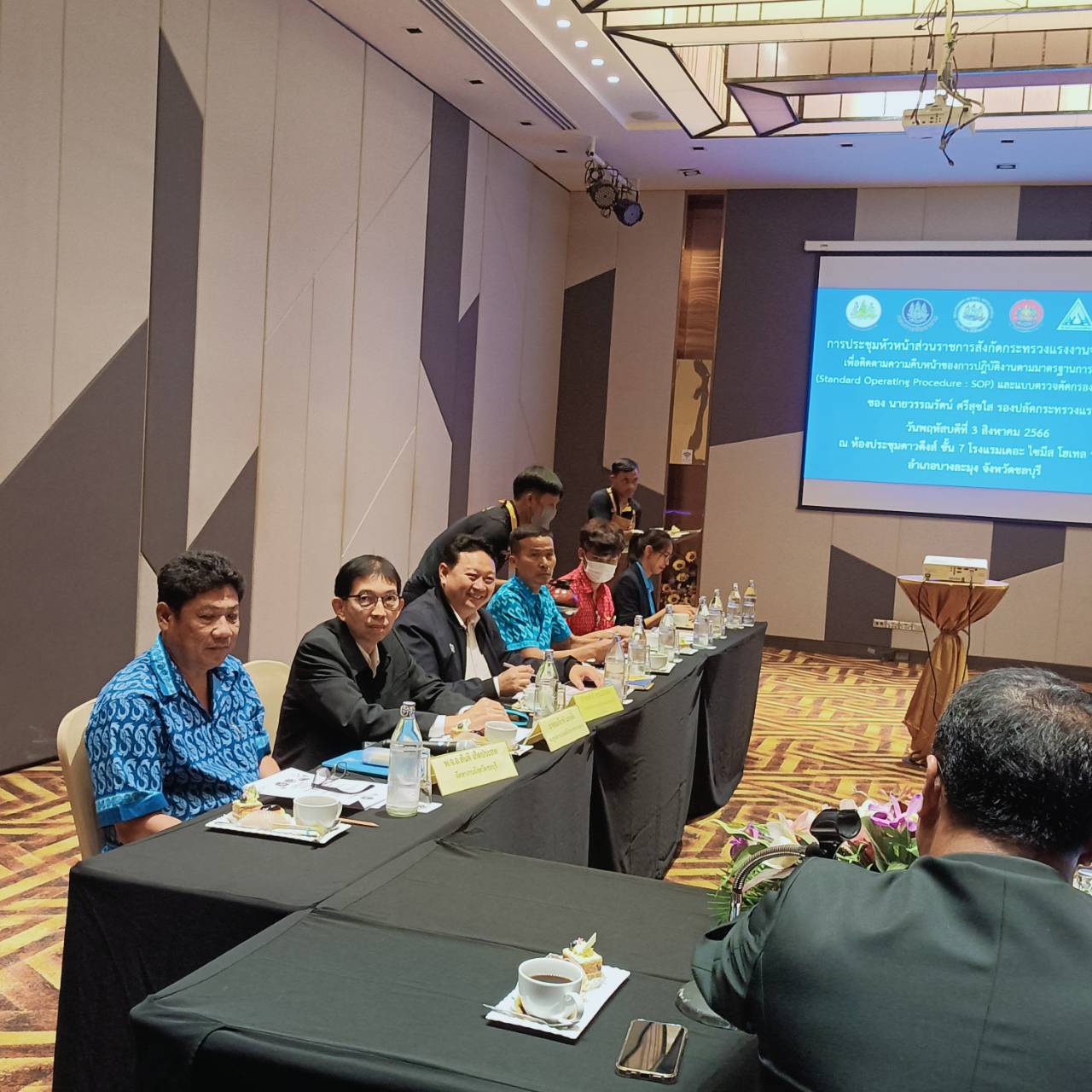 On August 3, 2023, the Permanent Secretary of Labour, Mr. Boonchob Suttamanaswong, assigned the Deputy Permanent Secretary of Labour, Mr. Wannarat Srisuksai, to chair the meeting of heads of government agencies under the Ministry of Labour in Chonburi Province to follow up on the progress of the work according to Standard Operating Procedure (SOP), preliminary screening (Form RorBor 1), and screening to seek preliminary indications to identify persons who have reasonable grounds to suspect that they may be victims of labour exploitation, forced labour or human trafficking. The meeting also covered the summary of the project implementation of the policy mechanism to prevent and resolve trafficking in persons in Chonburi Province between October 2022 – July 2023. The occasion took place at the Daowadueng Meeting Room, 7th Floor, The Siamese Hotel, Pattaya, Chonburi Province.