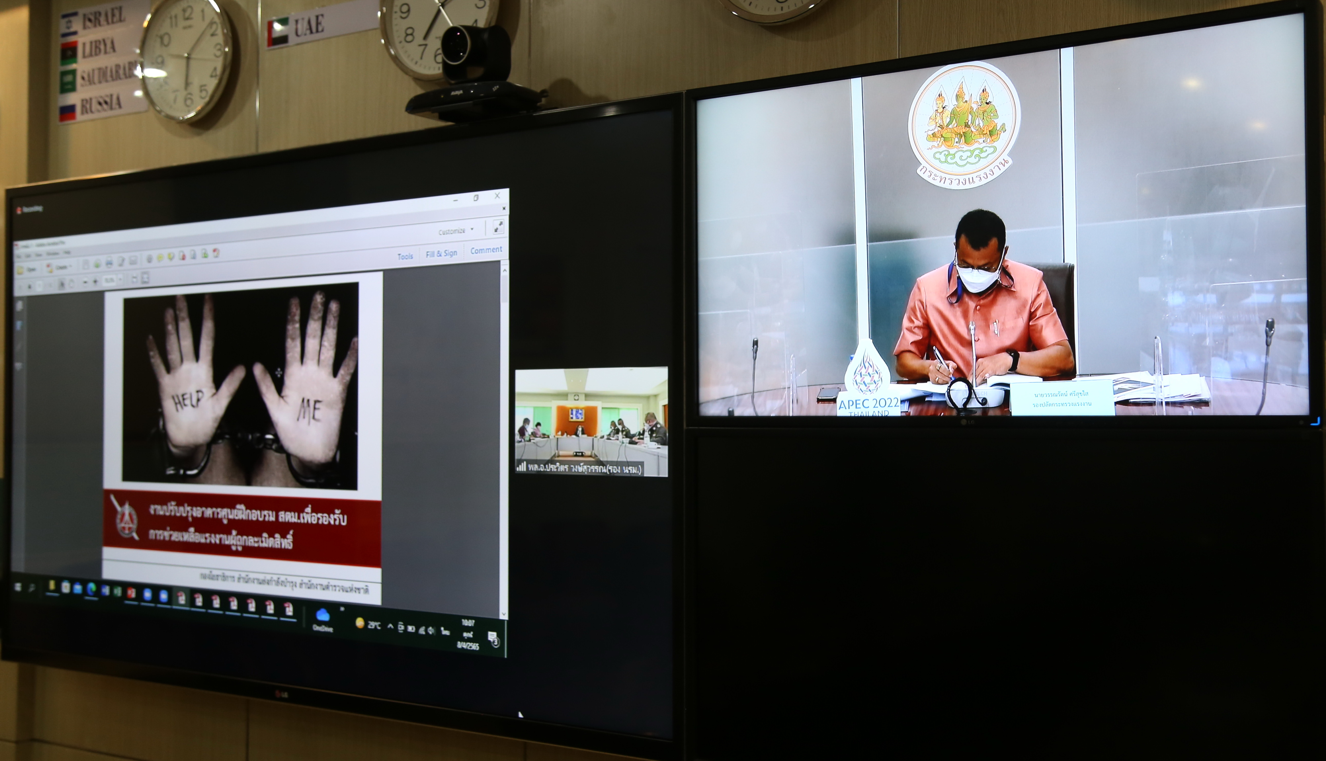 วันที่ 8 เมษายน 2565 เวลา 10.00 น. นายวรรณรัตน์ ศรีสุขใส รองปลัดกระทรวงแรงงาน ร่วมการประชุมคณะกรรมการประสานและกำกับการดำเนินงานป้องกันและปราบปรามการค้ามนุษย์ ครั้งที่ 2/2565 ผ่านระบบ Zoom โดยที่ประชุมได้พิจารณา ร่างแผนปฏิบัติการว่าด้วยกลไกการส่งต่อระดับชาติ การบริหารจัดการคดี และการช่วยเหลือคุ้มครองผู้เสียหายจากการค้ามนุษย์ และการบังคับใช้แรงงานหรือบริการ พ.ศ. 2565 รวมถึงร่างบันทึกข้อตกลงว่าด้วยความร่วมมือระหว่างรัฐบาลไทยและรัฐบาลออสเตรเลียในการจัดตั้งศูนย์ความเป็นเลิศเพื่อต่อต้านการค้ามนุษย์ ณ ห้องประชุมแสงสิงแก้ว ชั้น 5 อาคารกระทรวงแรงงาน