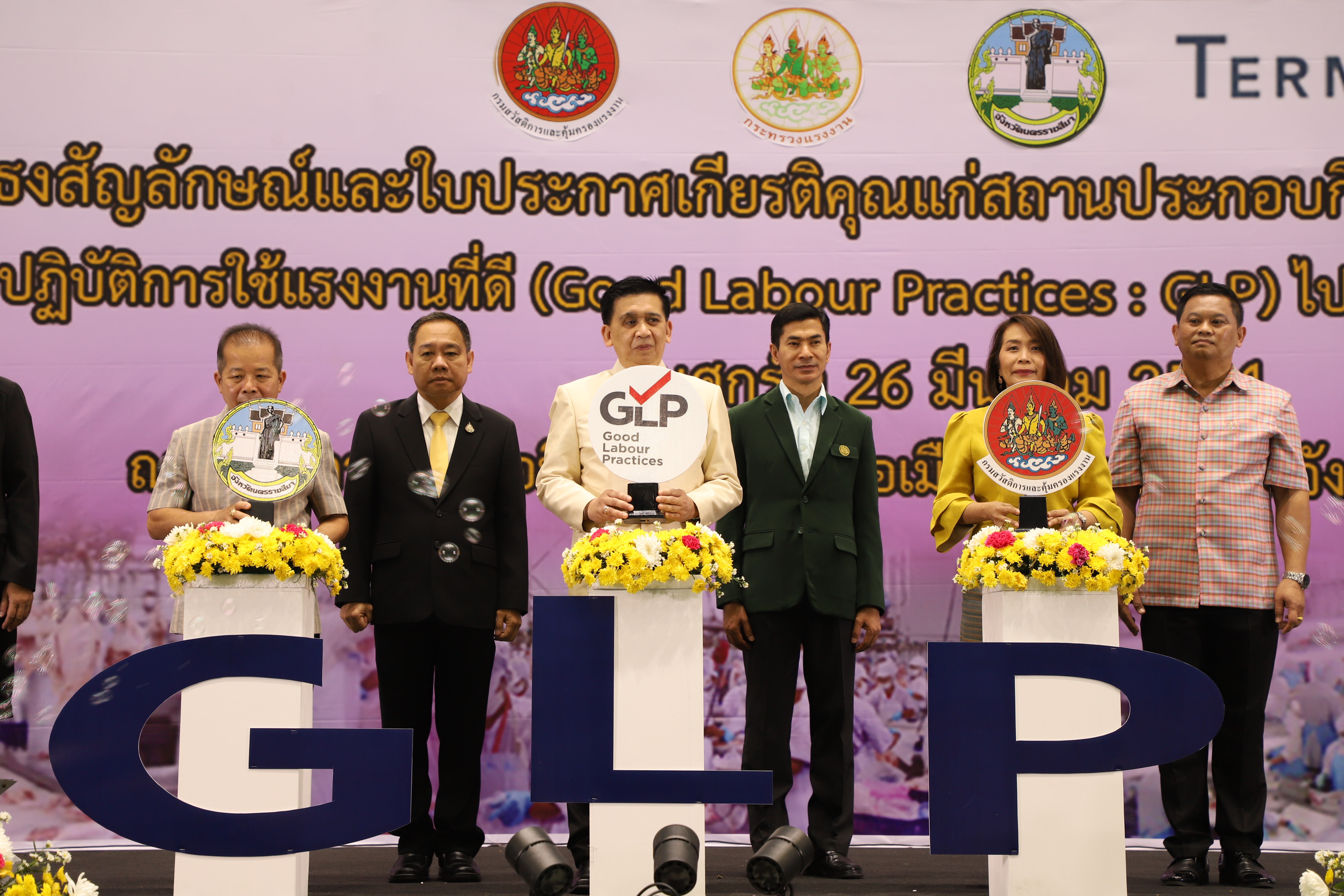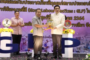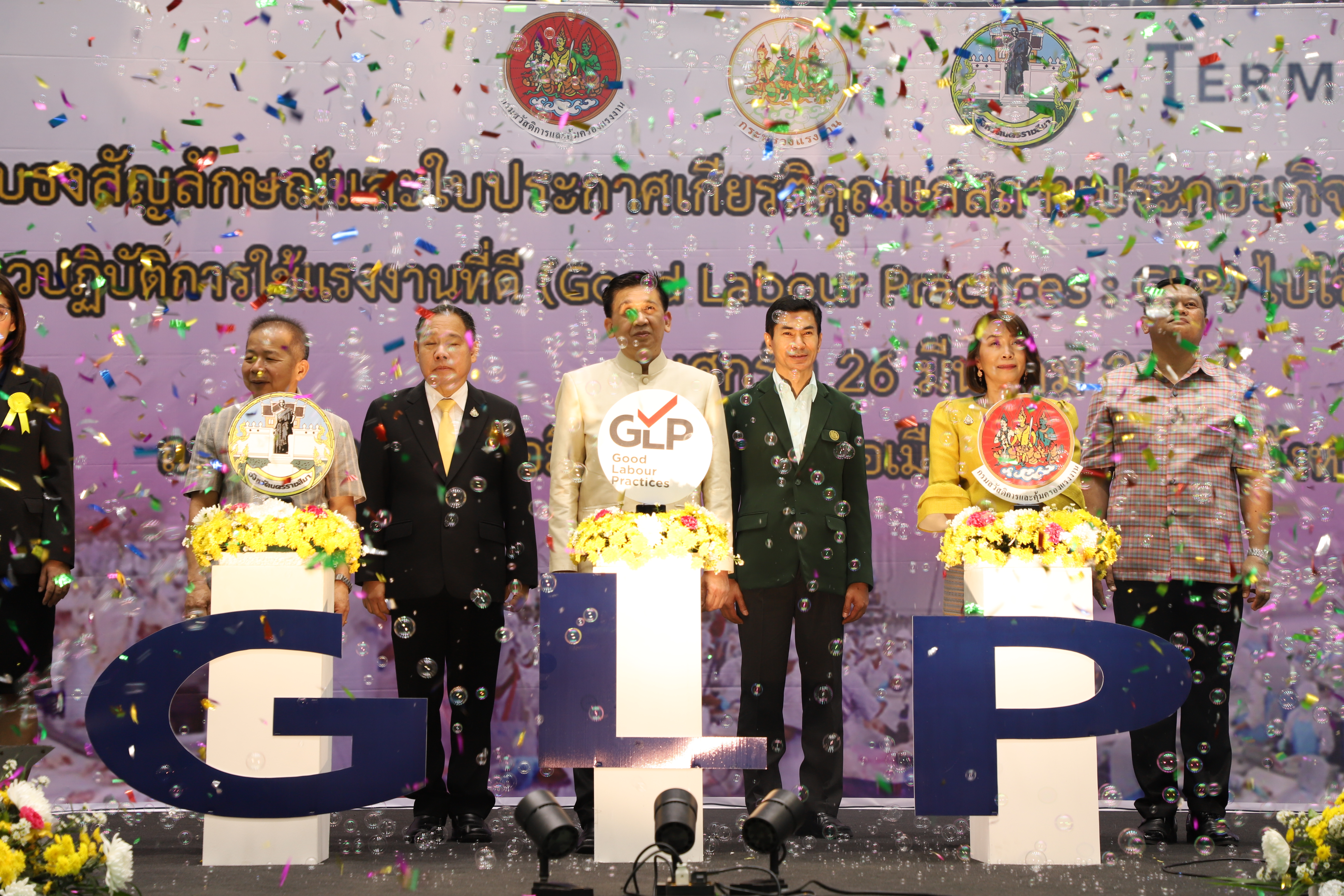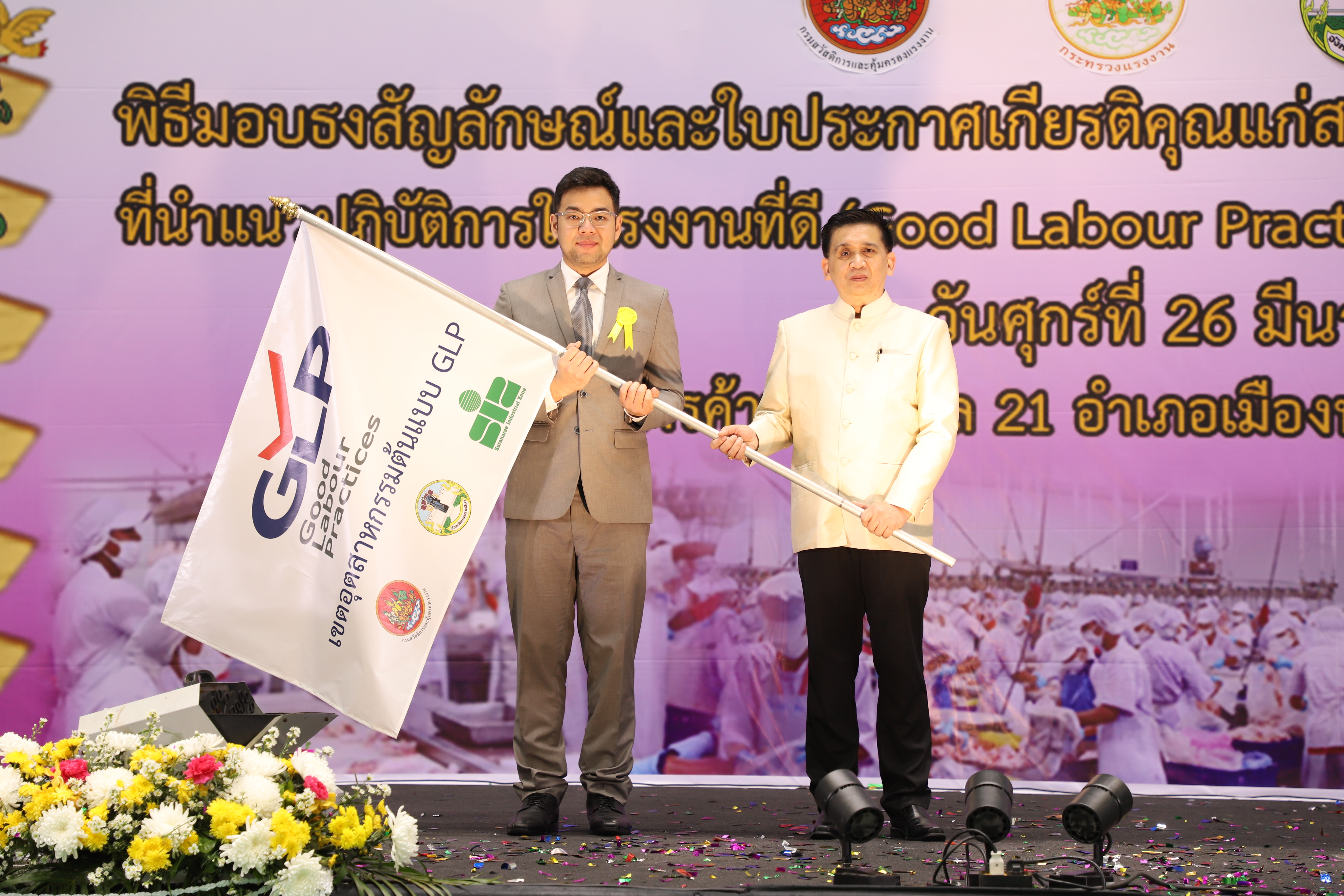 รองปลัดกระทรวงแรงงาน ประธานในพิธีมอบธงสัญลักษณ์และใบประกาศเกียรติคุณแก่สถานประกอบกิจการ และเขตอุตสาหกรรมที่นำแนวปฏิบัติที่ดี (Good Labour Practices : GLP) ไปใช้ในการบริหารจัดการแรงงาน แก้ปัญหา และพัฒนาองค์กรให้เกิดภาพลักษณ์ที่ดี เสริมสร้างความสามารถทางการค้าของประเทศไทย