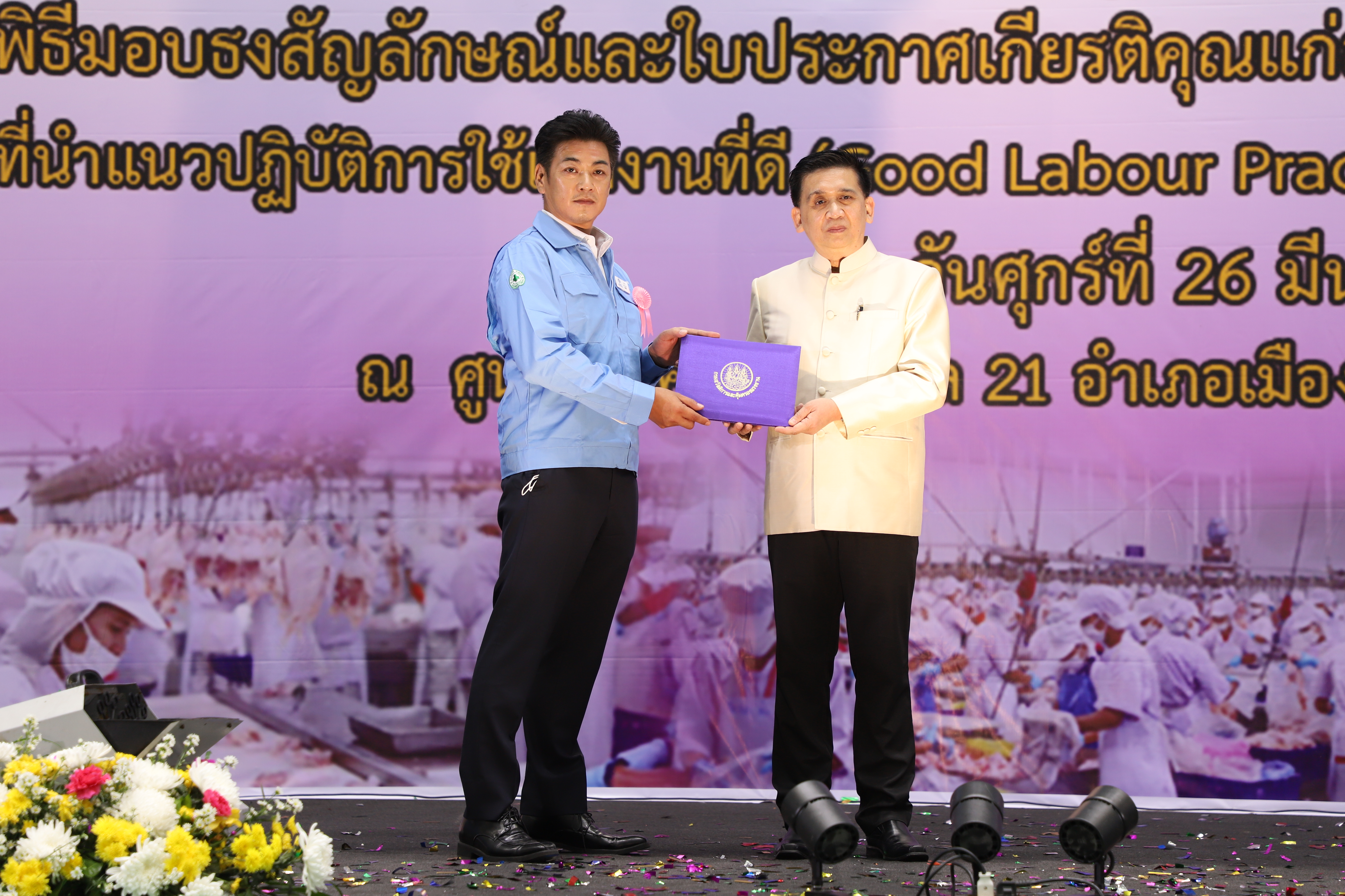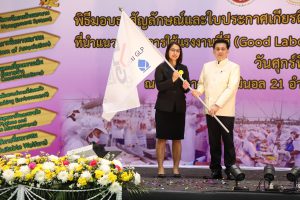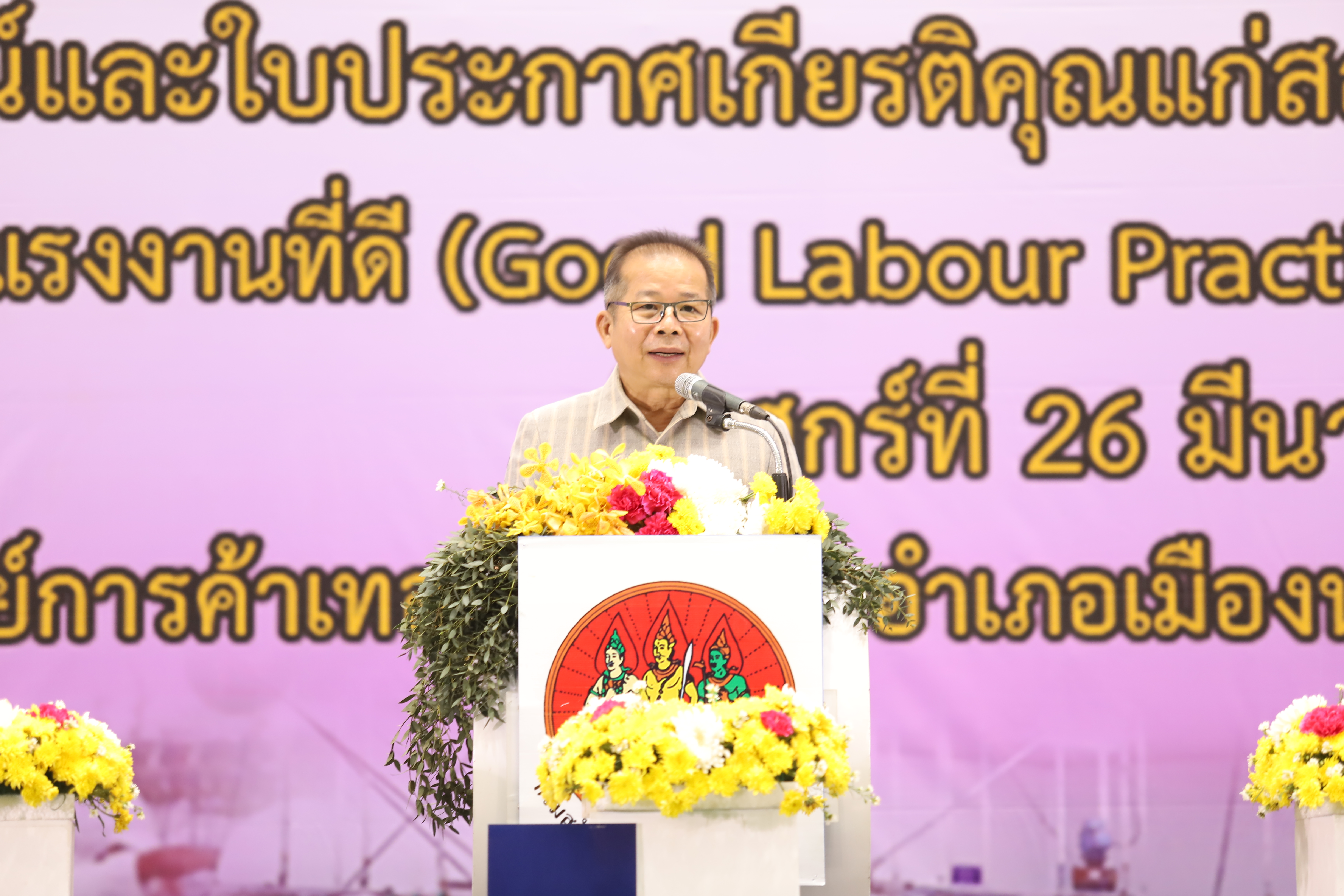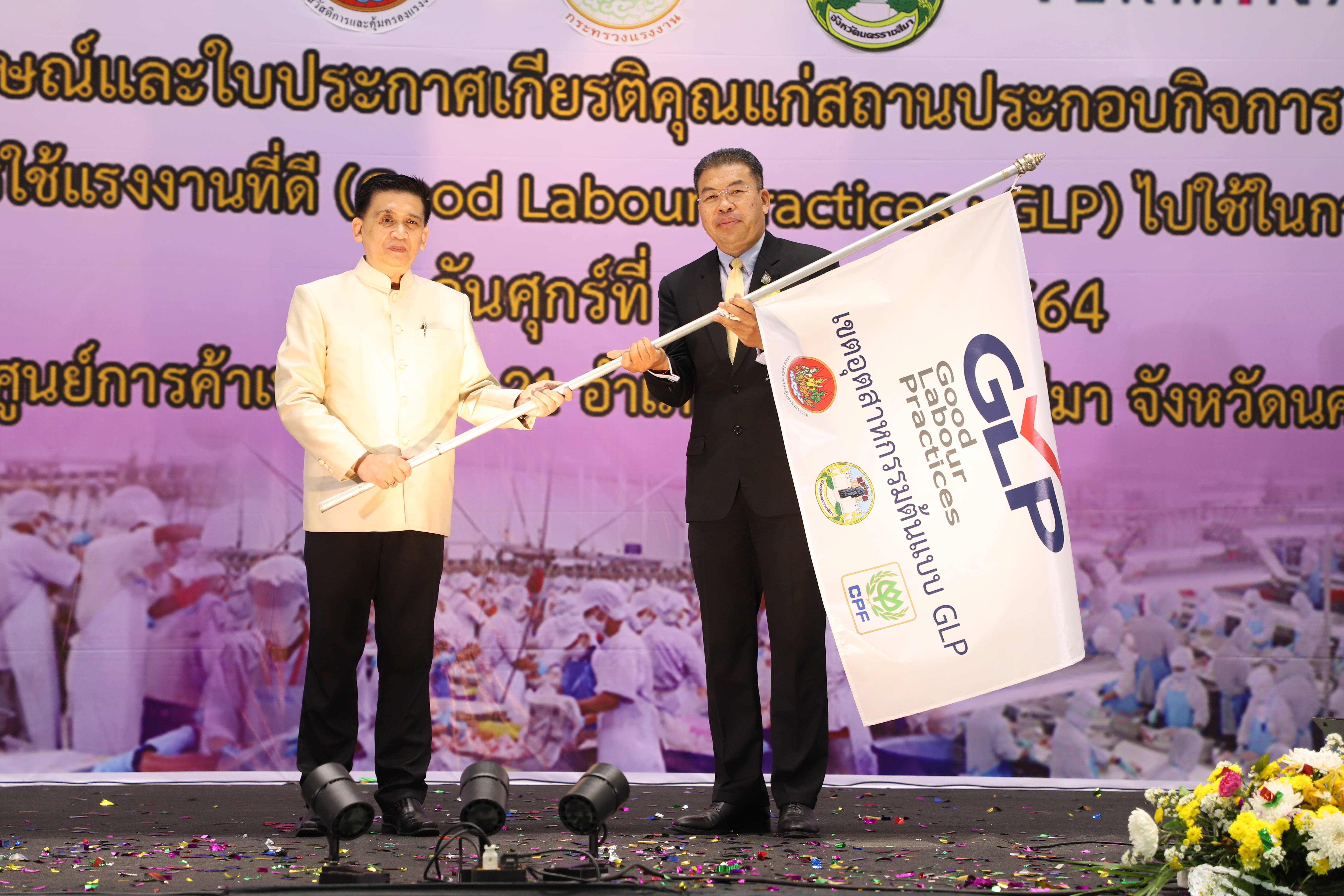 รองปลัดกระทรวงแรงงาน ประธานในพิธีมอบธงสัญลักษณ์และใบประกาศเกียรติคุณแก่สถานประกอบกิจการ และเขตอุตสาหกรรมที่นำแนวปฏิบัติที่ดี (Good Labour Practices : GLP) ไปใช้ในการบริหารจัดการแรงงาน แก้ปัญหา และพัฒนาองค์กรให้เกิดภาพลักษณ์ที่ดี เสริมสร้างความสามารถทางการค้าของประเทศไทย