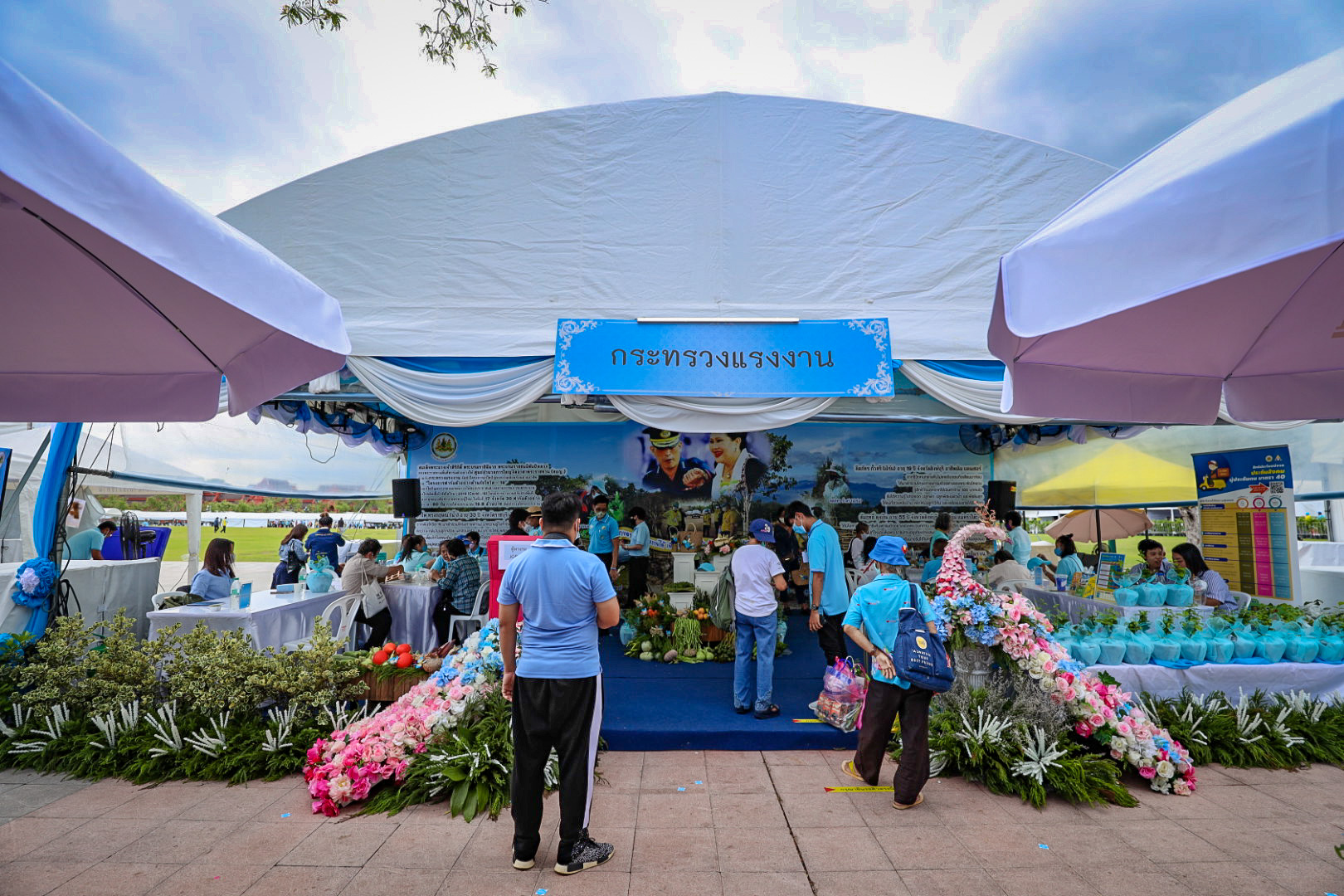 โดยกิจกรรมดังกล่าวเป็นหนึ่งในกิจกรรมเฉลิมพระเกียรติฯ ที่สำนักงานปลัดสำนักนายกรัฐมนตรี ได้กำหนดจัดงานดังกล่าวขึ้นระหว่างวันที่ 12 – 14 สิงหาคม 2563 ณ ท้องสนามหลวง ภายในบูธของกระทรวงแรงงานงานมีกิจกรรมที่น่าสนใจ ได้แก่ การแสดงนิทรรศการเฉลิมพระเกียรติฯ โครงการฟาร์มตัวอย่างต้านภัยโควิด – 19 ระยะที่ 1 บริการรับสมัครงานผ่านตู้ Job Box การสาธิตและการฝึกอาชีพ เช่น การทำกระเช้าดอกมะลิ การร้อยมาลัยด้วยดอกมะลิ การทำกระเป๋ากระจูดแต่งริบบิ้น การทำที่ใส่แก้วน้ำแต่งริบบิ้น สีสันงานเพ้น การทำเดคูพาจ และการทำตุ๊กตาญี่ปุ่นจากกระดาษสา เป็นต้น นอกจากนี้ ยังมีกิจกรรมการให้คำปรึกษาด้านแรงงาน “ทนายแรงงาน” การรับสมัครผู้ประกันตนมาตรา 40 อีกด้วย