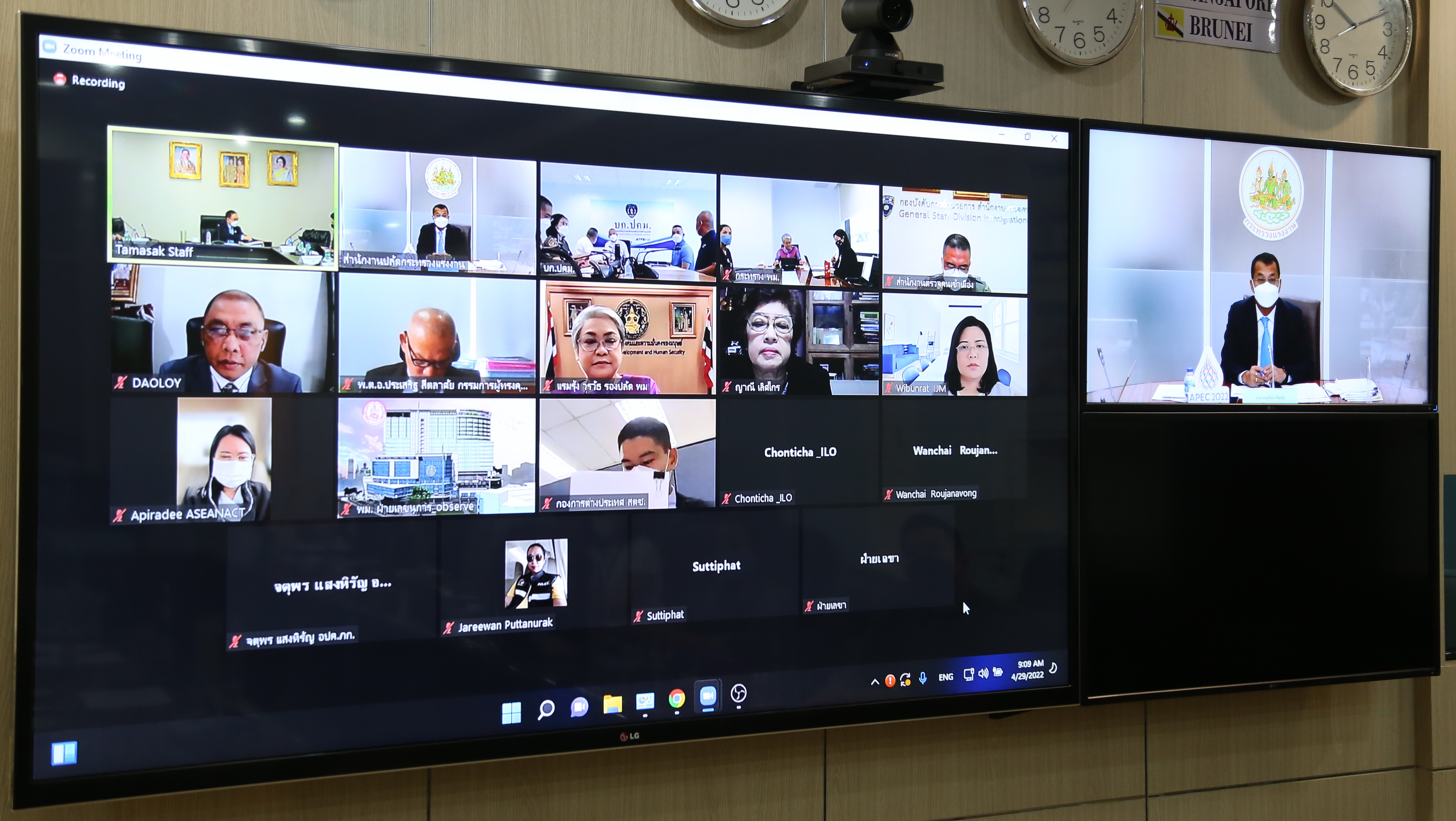 วันที่ 29 เมษายน 2565 เวลา 09.00 น. นายวรรณรัตน์ ศรีสุขใส รองปลัดกระทรวงแรงงาน ร่วมประชุมหารือความร่วมมือด้านการป้องกันและปราบปรามการค้ามนุษย์ร่วมกับองค์การระหว่างประเทศและภาคประชาสังคม ผ่านระบบ Zoom ณ ห้องประชุมแสงสิงแก้ว ชั้น 5 อาคารกระทรวงแรงงาน