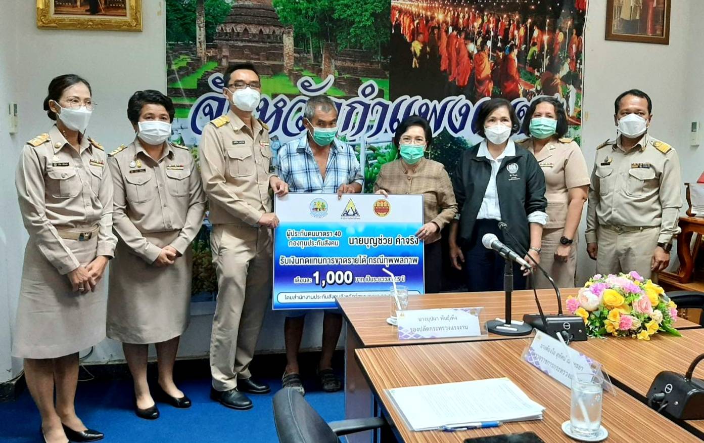 นอกจากนี้ นางบุปผา พันธุ์เพ็ง รองปลัดกระทรวงแรงงาน ได้มอบเงินให้แก่ นายสมยง ศรีบุญเรือง ประสบอันตรายเนื่องจากการทำงาน กองทุนเงินทดแทน เดือนละ 7,280 บาท เป็นระยะเวลาไม่น้อยกว่า 15 ปี และนายบุญช่วย คำจริง ผู้ประกันตนมาตรา 40 กองทุนประกันสังคม รับเงินทดแทนการขาดรายได้ กรณีทุพพลภาพ เดือนละ 1,000 บาท เป็นระยะเวลา 15 ปี รวมถึงยังได้ พบปะพูดคุยเป็นขวัญกำลังใจกับตัวแทนอาสาสมัครแรงาน โดยมี นายจุฬา จันทร์เยี่ยม ประธานอาสาสมัครแรงงาน และอาสาสมัครแรงงานในพื้นที่ตำบลคลองพิไกร อำเภอพรานกระต่าย จังหวัดกำแพงเพชร ให้การต้อนรับ ณ ห้องประชุม สำนักงานแรงงานจังหวัดกำแพงเพชร