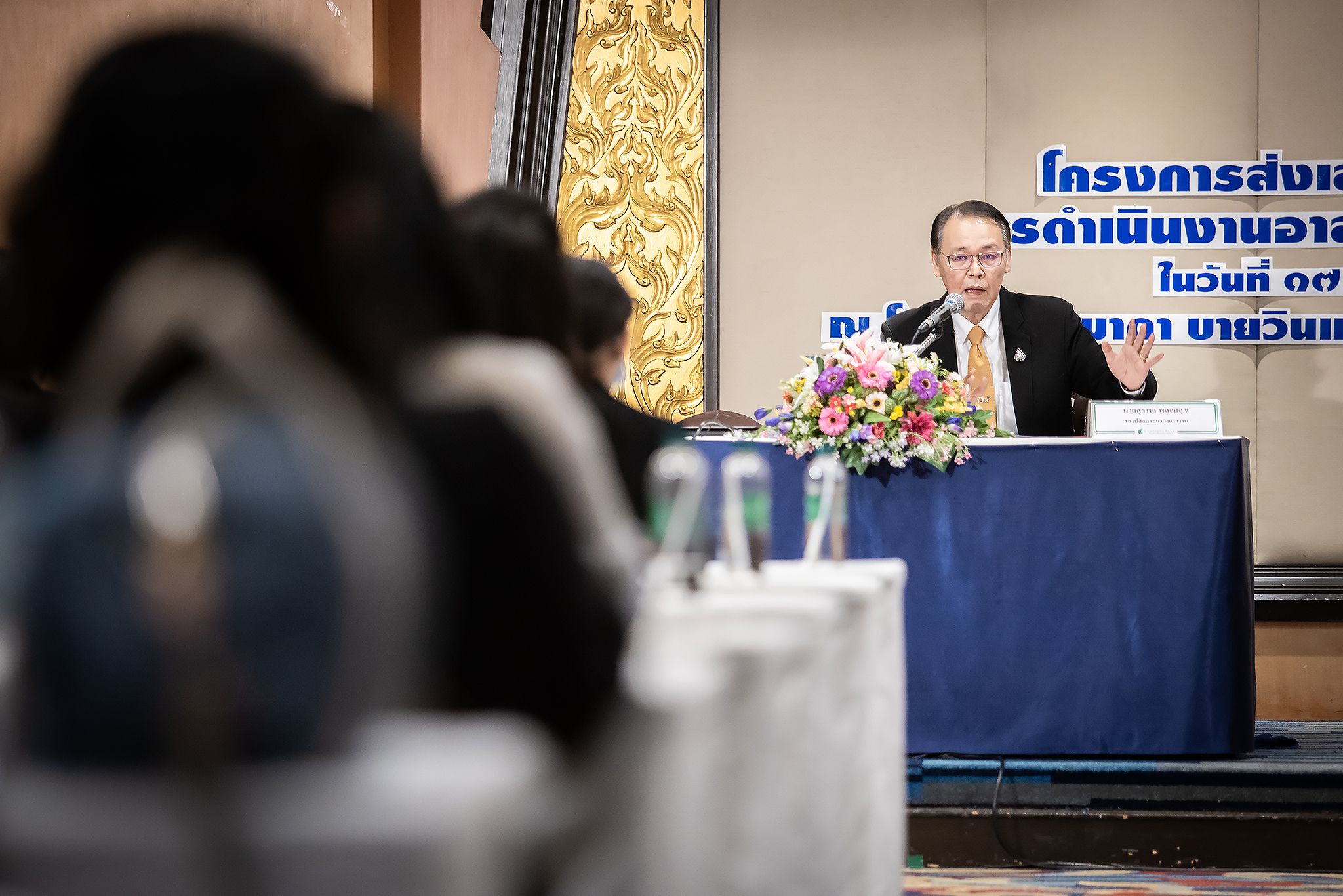 นอกจากนี้กระทรวงแรงงานได้เล็งเห็นถึงความสำคัญของการบูรณาการร่วมกันของหน่วยงานในสังกัดกระทรวงแรงงาน กรุงเทพมหานคร เพื่อให้หน่วยงานที่รับผิดชอบและเกี่ยวข้องกับงานอาสาสมัครแรงงานนำผลจากการสัมมนาในครั้งนี้ ไปพัฒนาภาพรวมของงานอาสาสมัครแรงงานร่วมกับหน่วยงานในสังกัดกระทรวงแรงงาน กรุงเทพมหานคร เพื่อวางแผนการปฏิบัติงาน และบูรณาการภารกิจด้านแรงงานร่วมกัน และให้เกิดการขับเคลื่อนงานอาสาสมัครแรงงานของกรุงเทพมหานครเป็นรูปธรรม ช่วยให้แรงงานมีคุณภาพชีวิตที่ดีขึ้น และมีความมั่นคงในการทำงาน บรรลุตามพันธกิจของกระทรวงที่ได้กำหนดไว้ประกอบกับความตั้งใจที่ทุกท่านได้เข้ามาสัมมนาในวันนี้ จะทำให้ทุกท่านได้รับทราบภารกิจของ 5 หน่วยงานในสังกัดกระทรวงแรงงาน และแนวทางที่จะมอบหมายให้อาสาสมัครแรงงานกรุงเทพมหานครดำเนินการ ในการนำบริการด้านแรงงานลงสู่ประชาชนในพื้นที่ การให้ข้อมูลข่าวสาร ประชาสัมพันธ์ ประสานความต้องการการให้บริการแรงงานด้านต่างๆ ส่งเสริมและป้องกันแก้ไขปัญหาแรงงานในระดับพื้นที่ และจัดเก็บข้อมูลด้านแรงงาน เพื่อให้อาสาสมัครแรงงานกรุงเทพมหานครปฏิบัติงานตามพันธกิจของกระทรวงแรงงานอย่างมีประสิทธิผล มีการสื่อสารเพื่อสร้างการรับรู้ให้ประชาชนในพื้นที่ รวมทั้งมีการแลกเปลี่ยนเรียนรู้ สามารถนำไปประยุกต์ใช้ให้เกิดประโยชน์ต่อตัวเอง และงานอาสาสมัครแรงงานต่อไปในอนาคต”