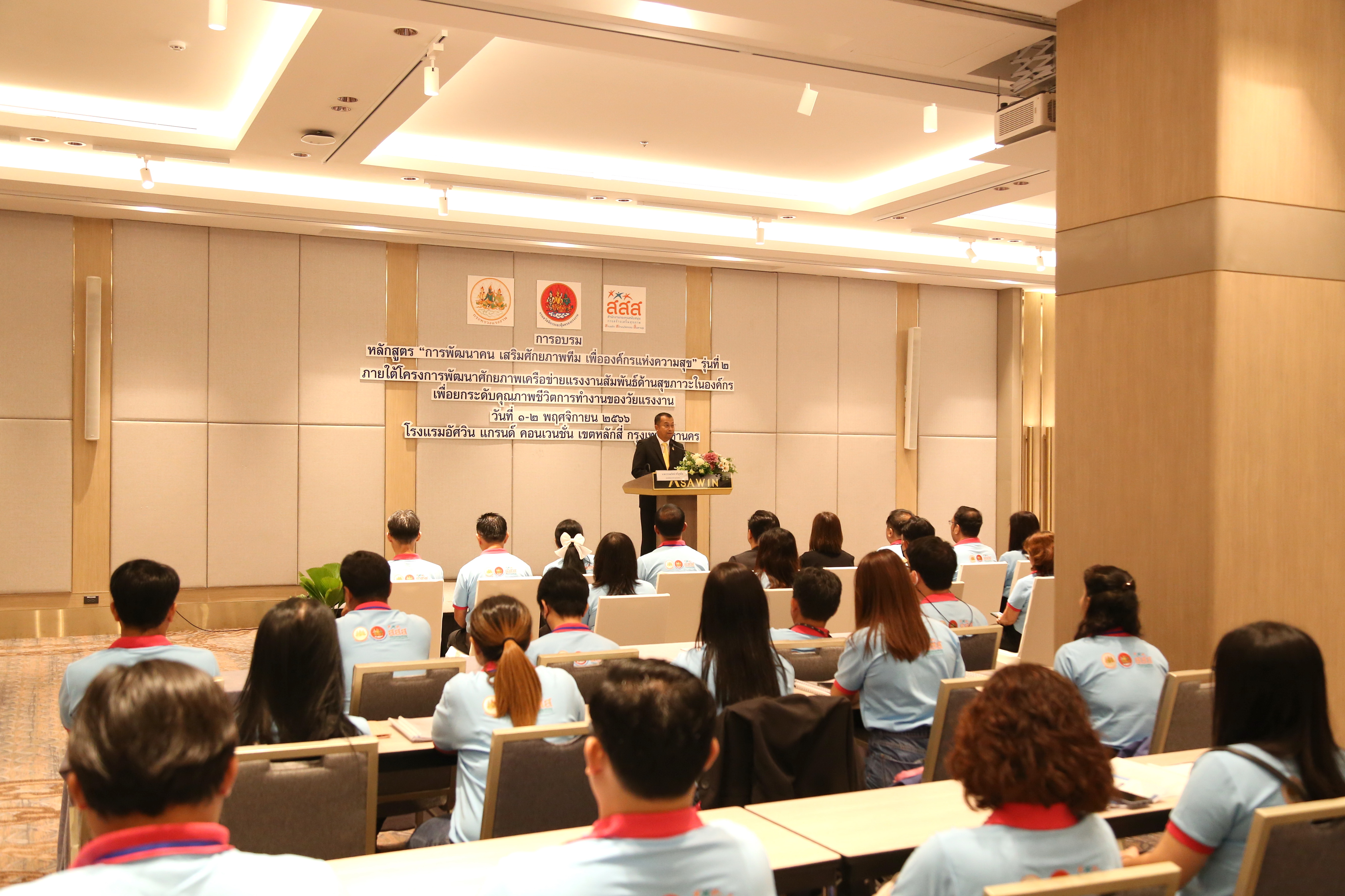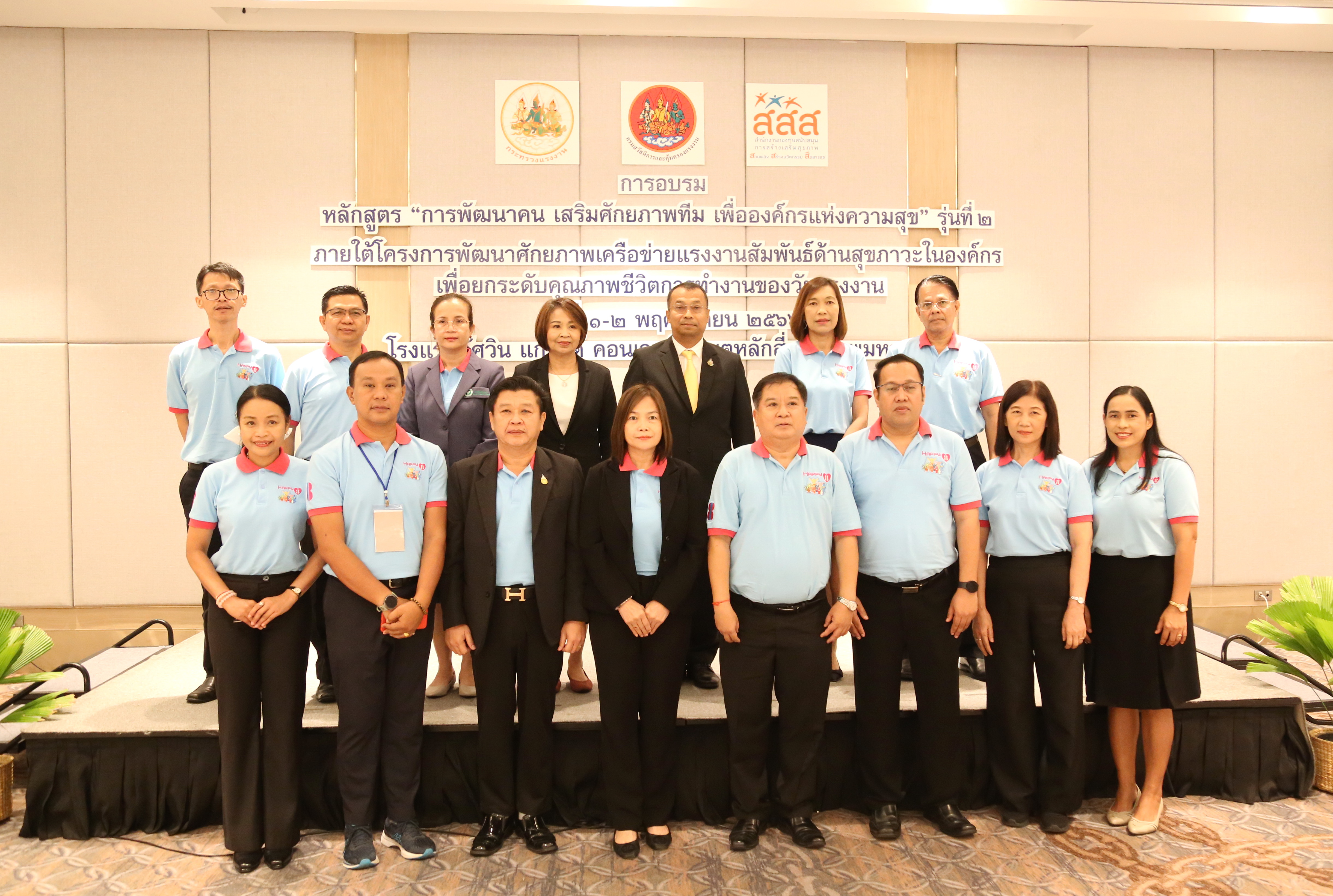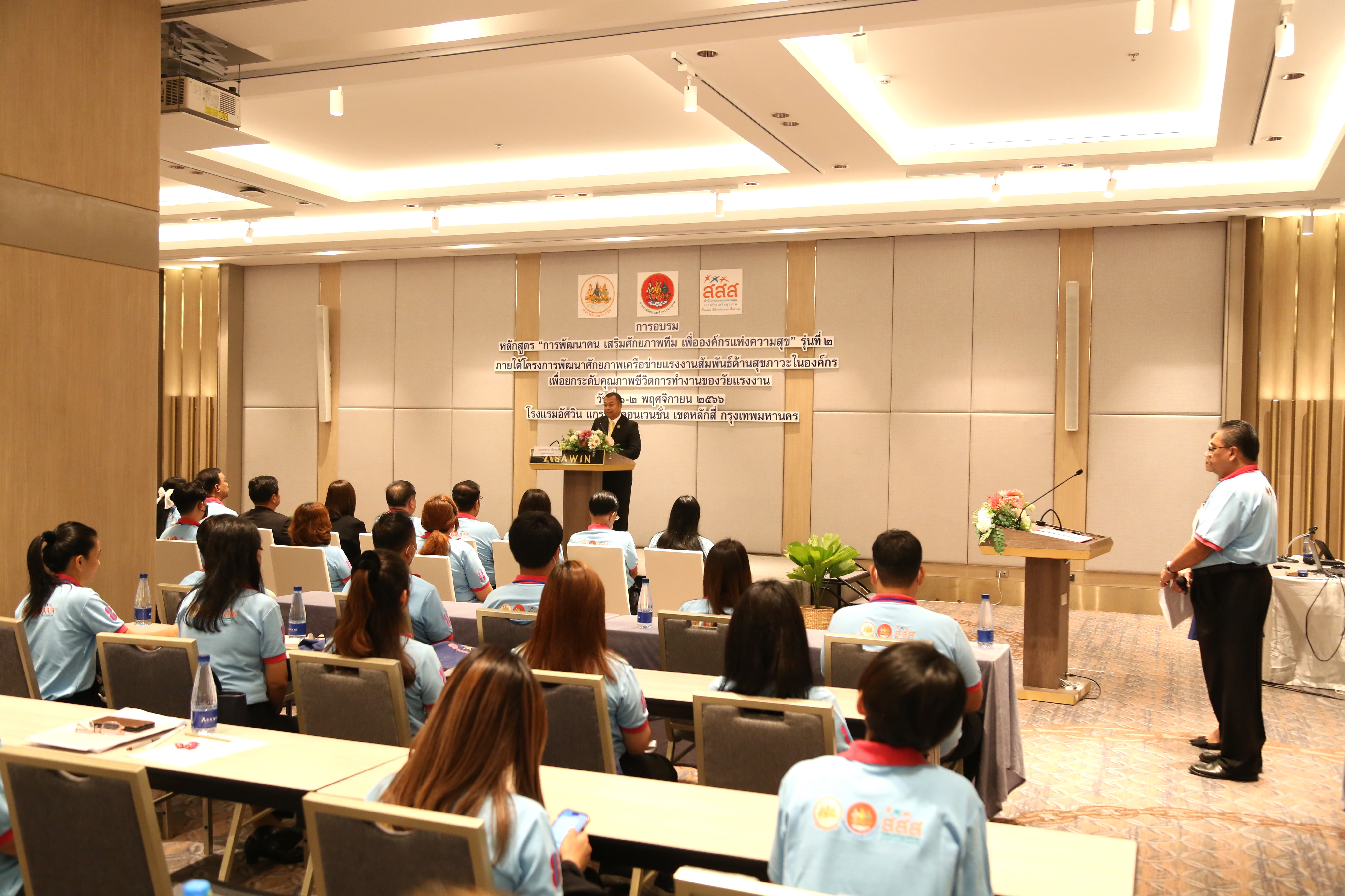 การอบรมหลักสูตร “การพัฒนาคน เสริมศักยภาพทีม เพื่อองค์กรแห่งความสุข” ที่จัดขึ้นในวันนี้เป็นการยกระดับการบริหารจัดการด้านแรงานสัมพันธ์กับการสร้างเสริมสุขภาวะในองค์กร โดยหลักสูตรนี้มีวัตถุประสงค์เพื่อให้ผู้แทนนายจ้าง ผู้แทนสหภาพแรงงานจากสถานประกอบ กิจการ และรัฐวิสาหกิจ ที่สมัครเข้าร่วมโครงการพัฒนาศักยภาพเครือข่ายแรงงานสัมพันธ์ด้านสุขภาวะในองค์กร เพื่อยกระดับคุณภาพชีวิตการทำงานของวัยแรงงาน นำองค์ความรู้ที่ได้รับเกี่ยวกับการสร้างองค์กรยุคใหม่สู่การเป็นองค์กรสุขภาวะ ผ่านแนวคิดการสร้างสุขภาวะองค์กรผ่านควผ่านความสุข 8 ประการ รวมทั้งการวิเคราะห์และสำรวจต้นทุนความสุขขององค์กรไปดำเนินแผนงานโครงการสร้างเสริมสุขภาวะในองค์กรตามสภาพปัญหาและบริบทของแต่ละองค์กร เพื่อเตรียมความพร้อมสู่การเข้ารับการตรวจประเมิน เพื่อให้ได้รับการเสนอชื่อเป็นสถานประกอบกิจการและรัฐวิสาหกิจดีเด่นด้านสุขภาวะในองค์กรประจำปี พ.ศ. 2567 การอบรมจัดขั้นระหว่างวันที่ 1 – 2 พฤศจิกายน 2566