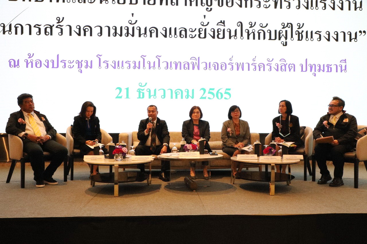 วันที่ 21 ธันวาคม 2565 13.00 น. นายวรรณรัตน์ ศรีสุขใส รองปลัดกระทรวงแรงงาน ร่วมเสวนาเชิงวิชาการ หัวข้อ “บทบาทและนโยบายที่ สำคัญของกระทรวงแรงงานในการสร้างความมั่นคงและ ยั่งยืนให้กับผู้ใช้แรงงาน” ในการสัมมนาภาคีเครือข่ายแรงงานจังหวัดปทุมธานี ณ ห้องประชุมโรงแรมโนโวเทล ฟิวเจอร์พาร์ครังสิต ปทุมธานี โดยมีเครือข่ายผู้ใช้แรงงาน และสมาชิกสหภาพแรงงาน และผู้แทนบริษัทฯ ในจังหวัดปทุมธานี ร่วมรับฟังมากกว่า 300 คน