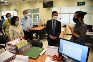 วันที่ ๕ มีนาคม ๒๕๖๔ เวลา ๑๐.๐๐ น. นายนิยม สองแก้ว รองปลัดกระทรวงแรงงาน เยี่ยมชมการปฏิบัติงานเจ้าหน้าที่สวัสดิการและคุ้มครองแรงงานจังหวัดนครปฐม โดยมี นางปภาพร นิลพัฒน์ สวัสดิการและคุ้มครองแรงงานจังหวัดนครปฐม และนางสาวสุจินต์ เย็นจิตต์รัตนวลี ประกันสังคมจัดหวัดนครปฐม ให้การต้อนรับและร่วมนำเยี่ยมชมการปฏิบัติงาน ณ สวัสดิการและคุ้มครองแรงงานจังหวัดนครปฐม ชั้น ๑ ศาลากลางจังหวัดนครปฐม