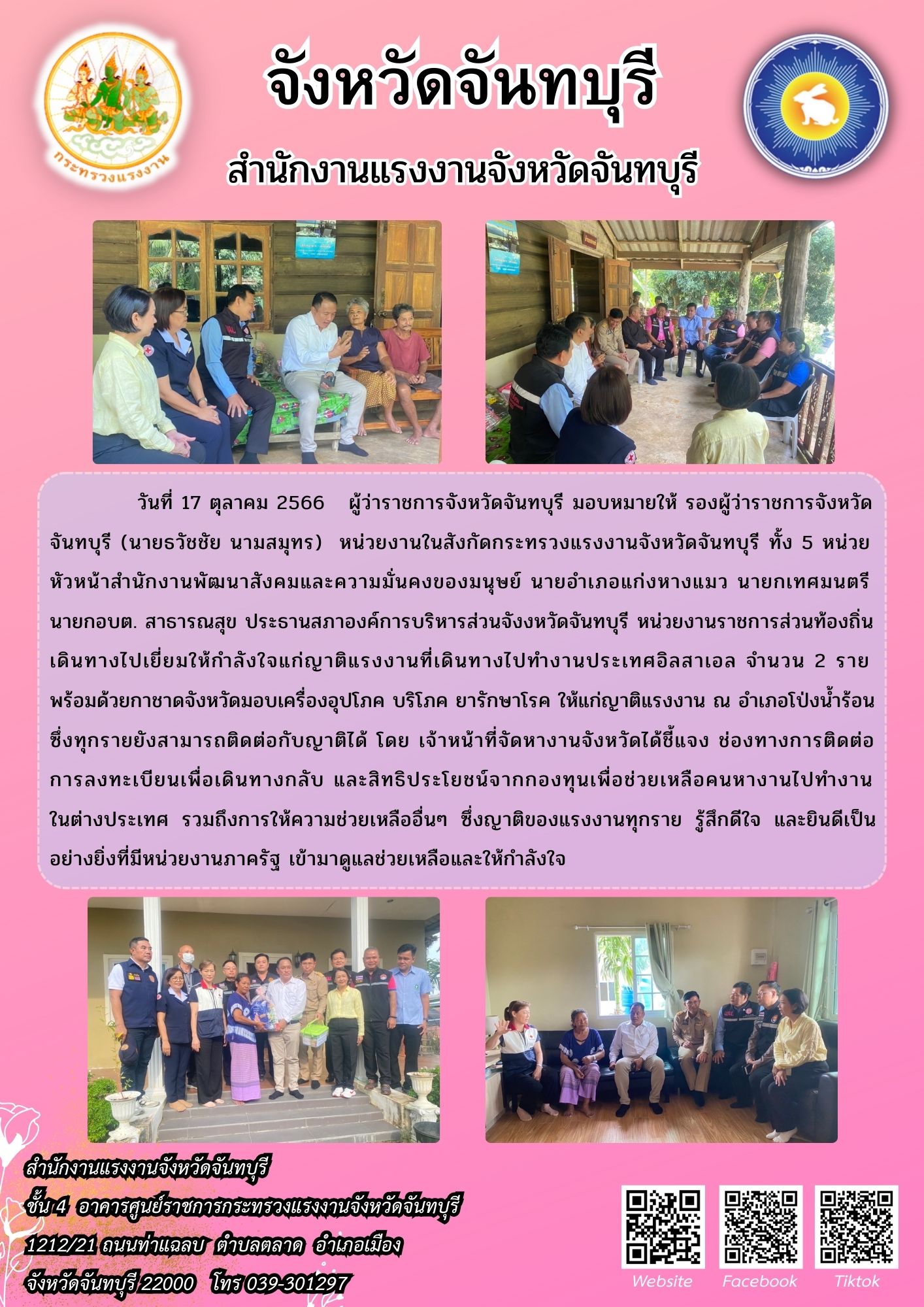 สรจ.จันทบุรี เดินทางไปเยี่ยมให้กำลังใจแก่ญาติแรงงาน ณ อำเภอโป่งน้ำร้อน
