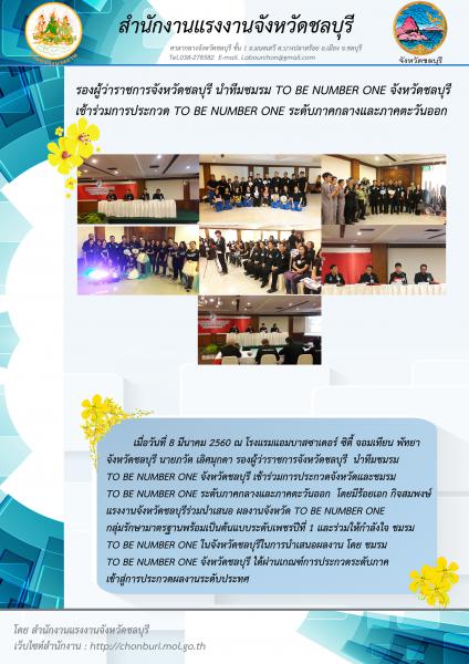 รองผู้ว่าราชการจังหวัดชลบุรี นำทีมชมรม TO BE NUMBER ONE เข้าร่วมประกวด TO BE NUMBER ONE ระดับภาคกลางและภาคตะวันออก