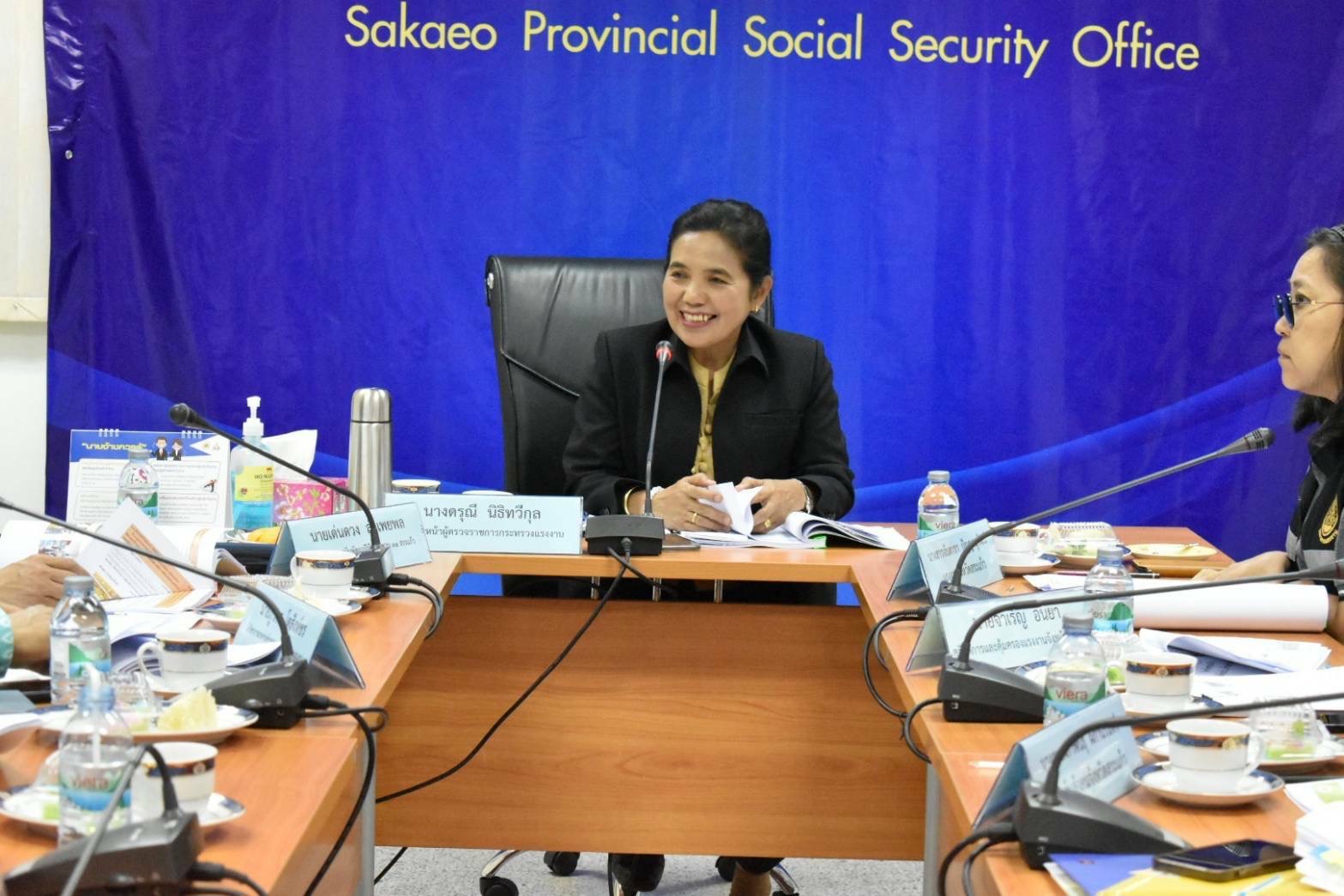 วันที่ 22 มีนาคม 2566 นางดรุณี นิธิทวีกุล รองหัวหน้าผู้ตรวจราชการกระทรวงแรงงาน เป็นประธานการประชุมร่วมกับหัวหน้าส่วนราชการสังกัดกระทรวงแรงงานจังหวัดสระแก้ว เพื่อติดตามการตรวจคัดกรองเบื้องต้นการบังคับใช้แรงงานการบริการและการค้ามนุษย์ด้านแรงงานในแรงงานต่างด้าวตามมาตรฐานการตรวจคัดกรอง (SOP) การบริหารจัดการแรงงานต่างด้าว จากนั้นลงพื้นที่ตรวจเยี่ยมสถานประกอบการที่มีการจ้างแรงงานต่างด้าวทำงาน เพื่อตรวจคุ้มครองดูแลสิทธิแรงงานของลูกจ้างแรงงานต่างด้าวให้ได้รับการปฏิบัติตามกฎหมายอย่างเท่าเทียมกับแรงงานไทย ณ บริษัท เทนไซ เอฟ แอนด์ บี จำกัด อ.วัฒนานคร จ.สระแก้ว ซึ่งเป็นสถานประกอบกิจการประเภทผลิตเครื่องดื่ม