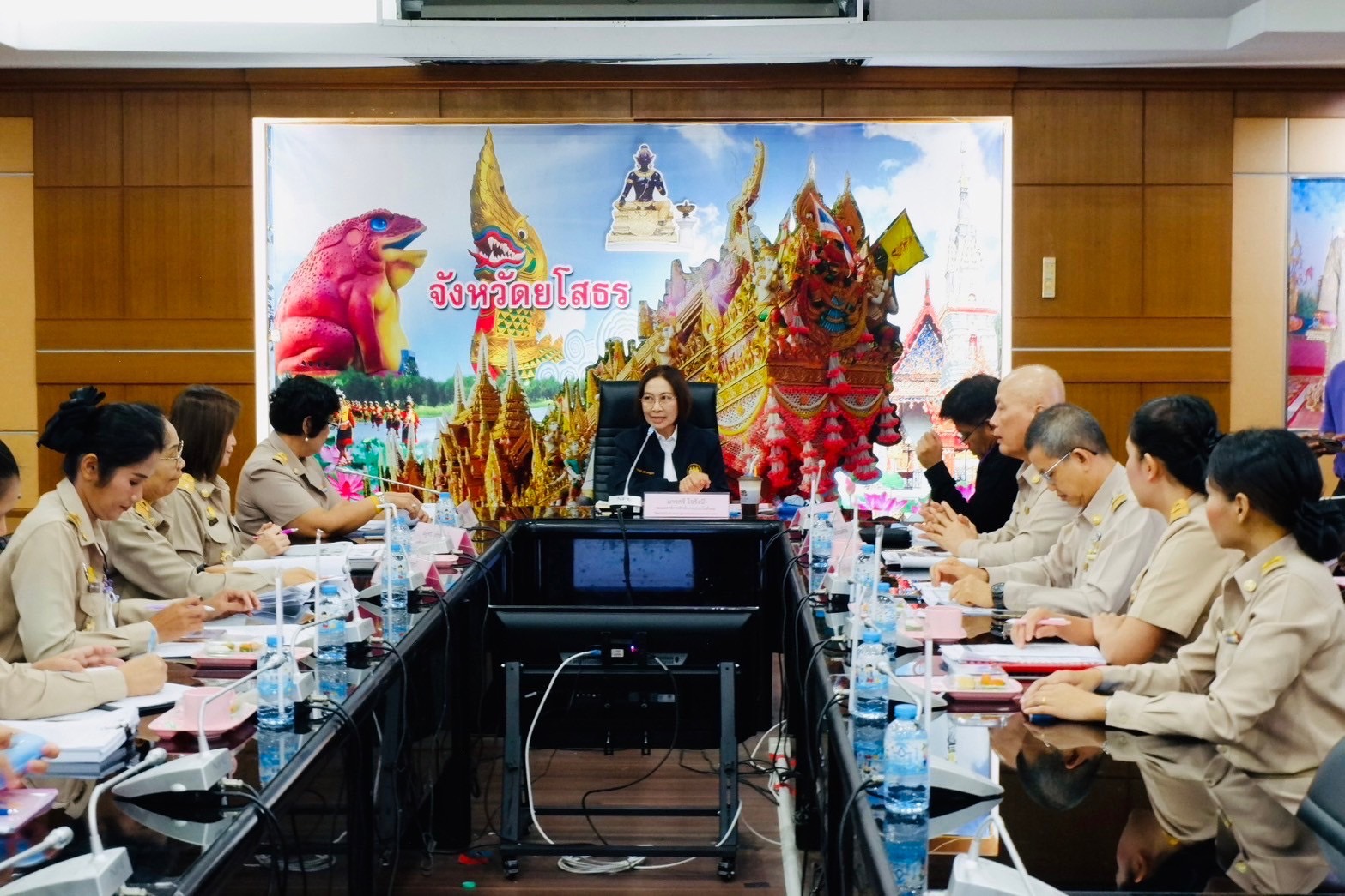 จากนั้น รักษาการผู้ตรวจราชการกระทรวงแรงงาน เป็นประธานประชุมหัวหน้าส่วนราชการในสังกัดกระทรวงแรงงานจังหวัดยโสธร พร้อมด้วย นายภัทรวุธ เภอเสละ ผู้ตรวจราชการกรม กรมการจัดหางาน เพื่อติดตามความก้าวหน้าการปฏิบัติงานตามแผนการตรวจราชการ รอบที่ 2 (Progress Review) ภายใต้นโยบายของกระทรวงแรงงาน “ทักษะดี มีงานทำ หลักประกันทางสังคมเด่น เน้นขับเคลื่อนเศรษฐกิจ” เป็นไปตามเป้าหมาย ณ ห้องประชุมสุนทรราชวงศา ศาลากลางจังหวัดยโสธร ชั้น 2 (หลังใหม่)
