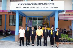 ต่อมา เวลา 13.00 น. นางมารศรี ใจรังษี รองเลขาธิการสำนักงานประกันสังคม รักษาการในตำแหน่งผู้ตรวจราชการกระทรวงแรงงาน ลงพื้นที่ตรวจเยี่ยมการฝึกอบรมโครงการพัฒนาศักยภาพแรงงานเพื่อรองรับการจ่ายค่าจ้างตามระดับมาตรฐานฝีมือ สาขาช่างไฟฟ้าภายในอาคาร ระดับ 1 มีผู้เข้าร่วมการฝึกอบรม จำนวน 20 ราย ณ สำนักงานพัฒนาฝีมือแรงงานอำนาจเจริญ และตรวจเยี่ยมศูนย์บริการร่วมกระทรวงแรงงาน จังหวัดยโสธร พร้อมด้วย นางอาภรณ์ สีสา แรงงานจังหวัดยโสธร นายสมบัติ เสงี่ยมศักดิ์ ประกันสังคมจังหวัดยโสธร และนายวชิรวิทย์ ผาดสุววรรณ์ ผู้อำนวยการสำนักงานพัฒนาฝีมือแรงงานยโสธร ร่วมลงพื้นที่ตรวจเยี่ยม เพื่อสร้างขวัญ และกำลังใจแก่เจ้าหน้าที่ผู้ปฏิบัติงาน พร้อมทั้ง ให้คำแนะนำการปฏิบัติหน้าที่ด้านการให้บริการประชาชนแก่เจ้าหน้าที่ประจำศูนย์ ณ ที่ว่าการอำเภอเลิงนกทา จังหวัดยโสธร