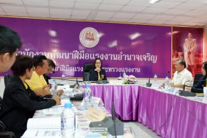 วันที่ 18 มีนาคม 2567 เวลา 08.30 น.นางมารศรี ใจรังษี รองเลขาธิการสำนักงานประกันสังคม รักษาการในตำแหน่งผู้ตรวจราชการกระทรวงแรงงาน เป็นประธานการประชุมตรวจติดตามผลการดำเนินงานของสำนักงานปลัดกระทรวงแรงงานร่วมกับเจ้าหน้าที่สำนักงานแรงงานจังหวัดอำนาจเจริญ ผลการดำเนินงานและผลการเบิกจ่ายเป็นไปตามเป้าหมายที่กำหนด และพบปะพูดคุยแลกเปลี่ยนข้อคิดเห็น ปัญหาอุปสรรค ร่วมกับอาสาสมัครแรงงาน จำนวน 2 ราย ได้แก่ นายวสุวัฒน์ ผาวัน อาสาสมัครแรงงานตำบลอำนาจ และนางบัวทิพย์ บุญหนา อาสาสมัครแรงงานตำบลจิกคู่ และขอบคุณอาสาสมัครแรงงานที่ให้ความร่วมมือกับทางหน่วยงานในสังกัดกระทรวงแรงงานเป็นอย่างดี และเป็นเครือข่ายที่เข้มแข็ง จากนั้นเป็นประธานการประชุมหัวหน้าส่วนราชการในสังกัดกระทรวงแรงงานจังหวัดอำนาจเจริญ พร้อมด้วยนายภัทรวุธ เภอเสละ ผู้ตรวจราชการกรม กรมการจัดหางาน เพื่อติดตามความก้าวหน้าการปฏิบัติงานตามแผนการตรวจราชการ รอบที่ 2 (Progress Review) ภายใต้นโยบายของกระทรวงแรงงาน “ทักษะดี มีงานทำ หลักประกันทางสังคมเด่น เน้นขับเคลื่อนเศรษฐกิจ” เป็นไปตามเป้าหมาย ณ ห้องประชุมสำนักงานพัฒนาฝีมือแรงงานอำนาจเจริญ ตำบลไก่คำ อำเภอเมืองอำนาจเจริญ จังหวัดอำนาจเจริญ