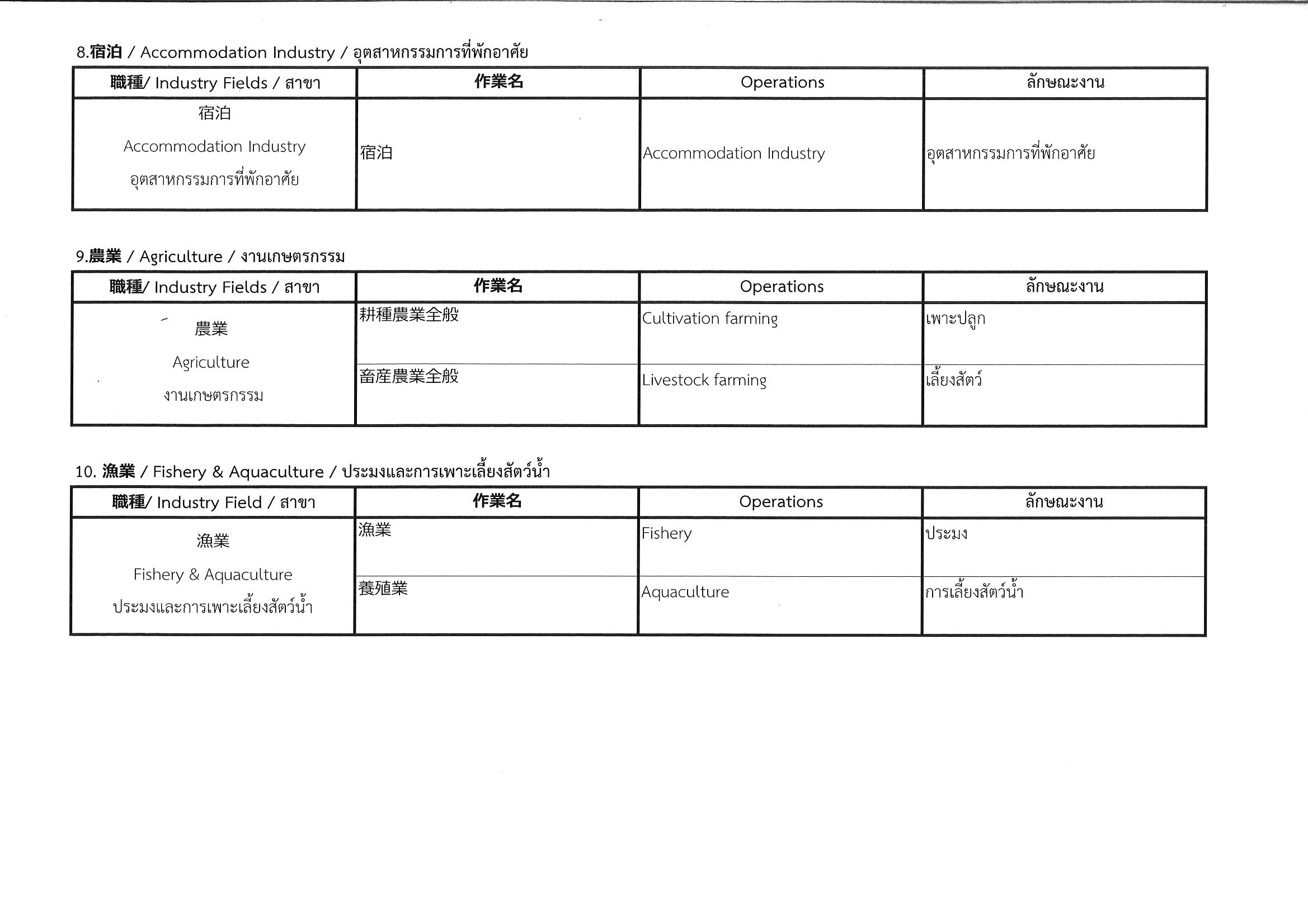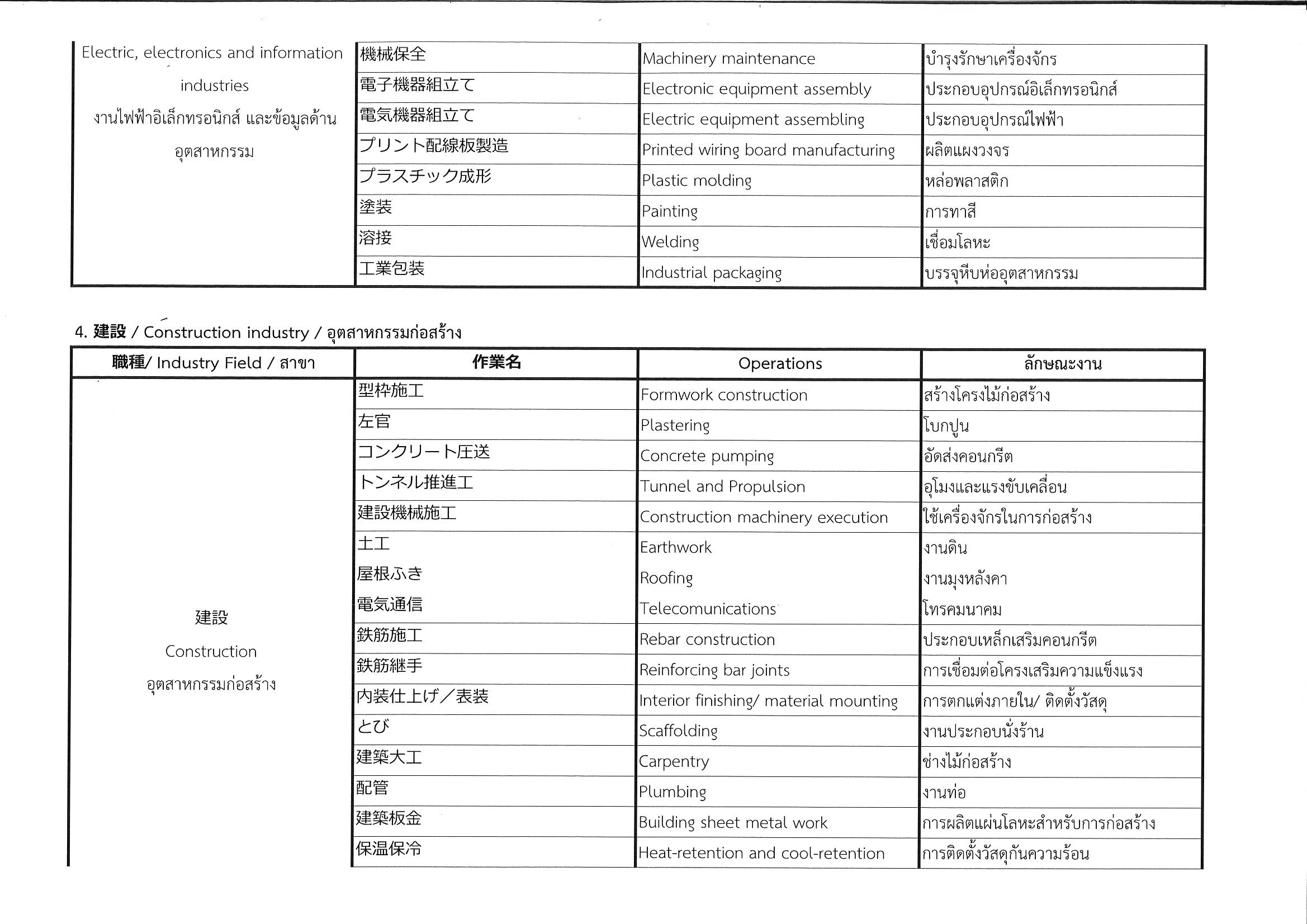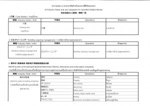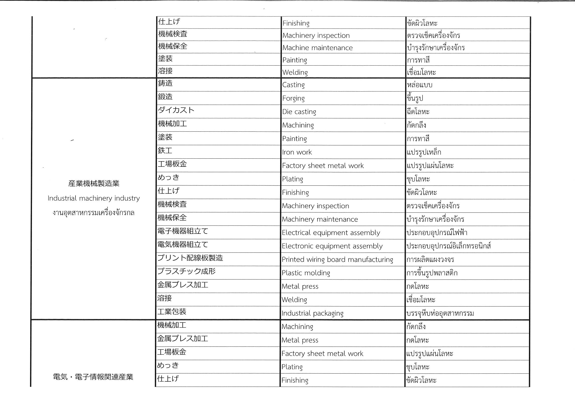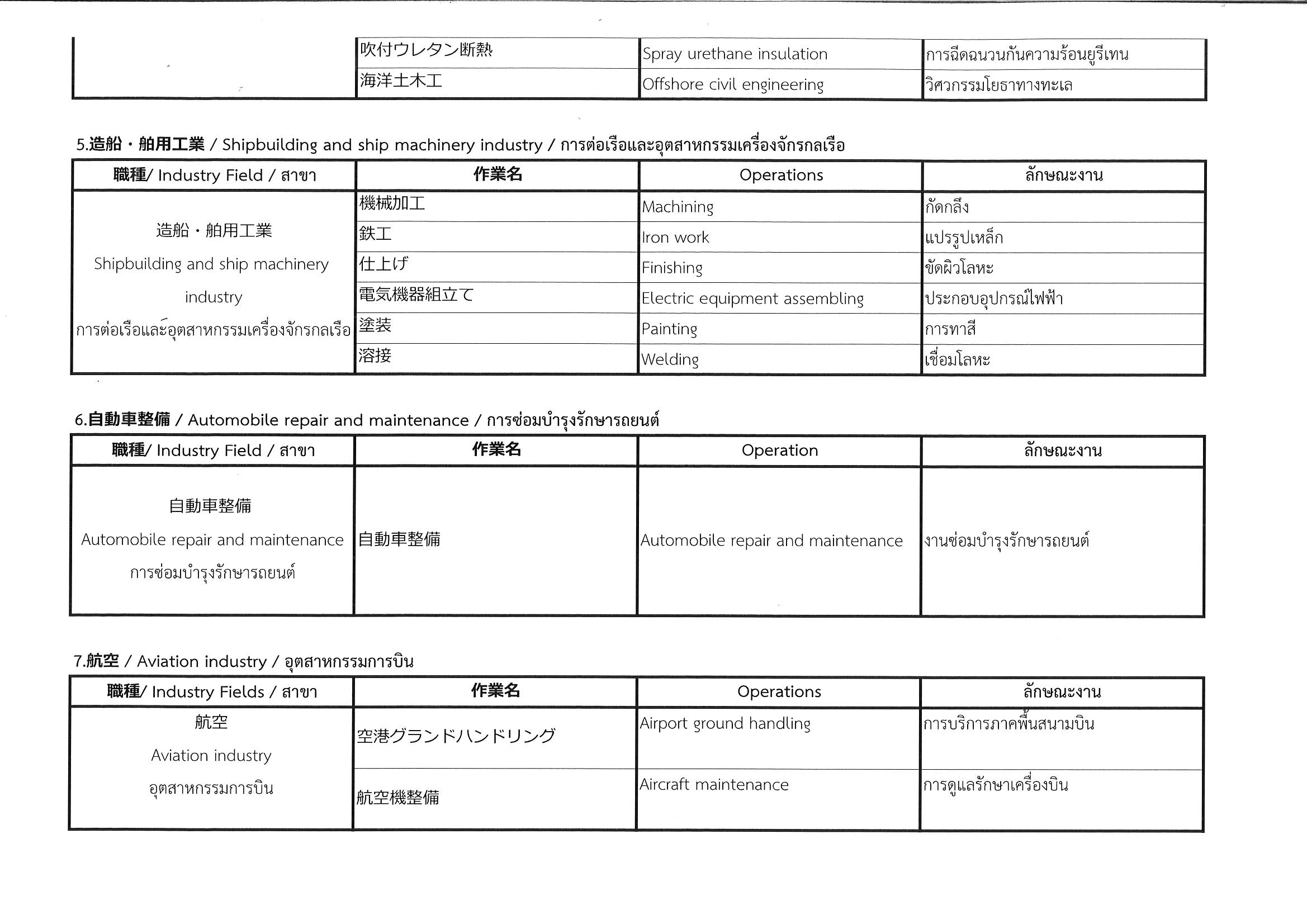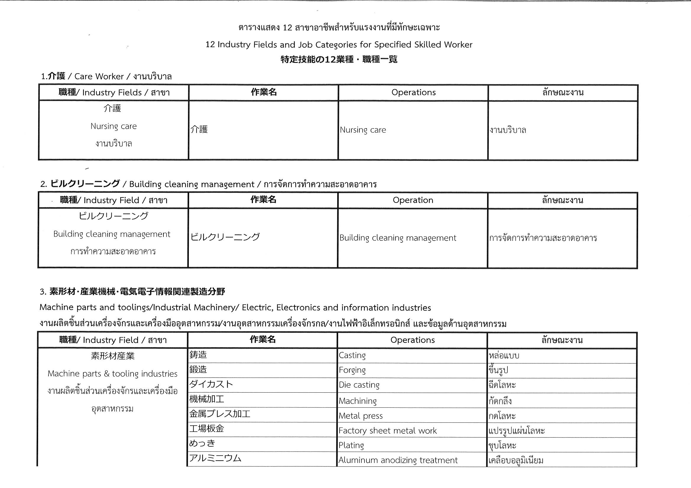 เมื่อวันที่ 26 เมษายน 2565 รัฐบาลญี่ปุ่นได้ปรับควบรวม 3 สาขาอาชีพของแรงงานทักษะเฉพาะ (Specified Skilled Worker: SSW) สถานภาพการพำนักประเภทหมายเลข 1 ได้แก่ งานผลิตชิ้นส่วนเครื่องจักรและเครื่องมืออุตสาหกรรม (Machine parts & tooling industries) งานอุตสาหกรรมเครื่องจักรกล (Industrial machinery industry) และงานไฟฟ้าอิเล็กทรอนิกส์ และข้อมูลด้านอุตสาหกรรม (Electric, electronics and information industries) เป็นสาขาอาชีพเดียวคือ งานผลิตชิ้นส่วนเครื่องจักรและเครื่องมืออุตสาหกรรม/งานอุตสาหกรรมเครื่องจักรกล/งานไฟฟ้าอิเล็กทรอนิกส์ และข้อมูลด้านอุตสาหกรรม (Machine parts and tooling/Industrial machinery/Electric, electronics and information industries) ทำให้จำนวนสาขาอาชีพของแรงงาน SSW สถานภาพการพำนักประเภทหมายเลข 1 ลดลงเหลือ 12 สาขาอาชีพ
