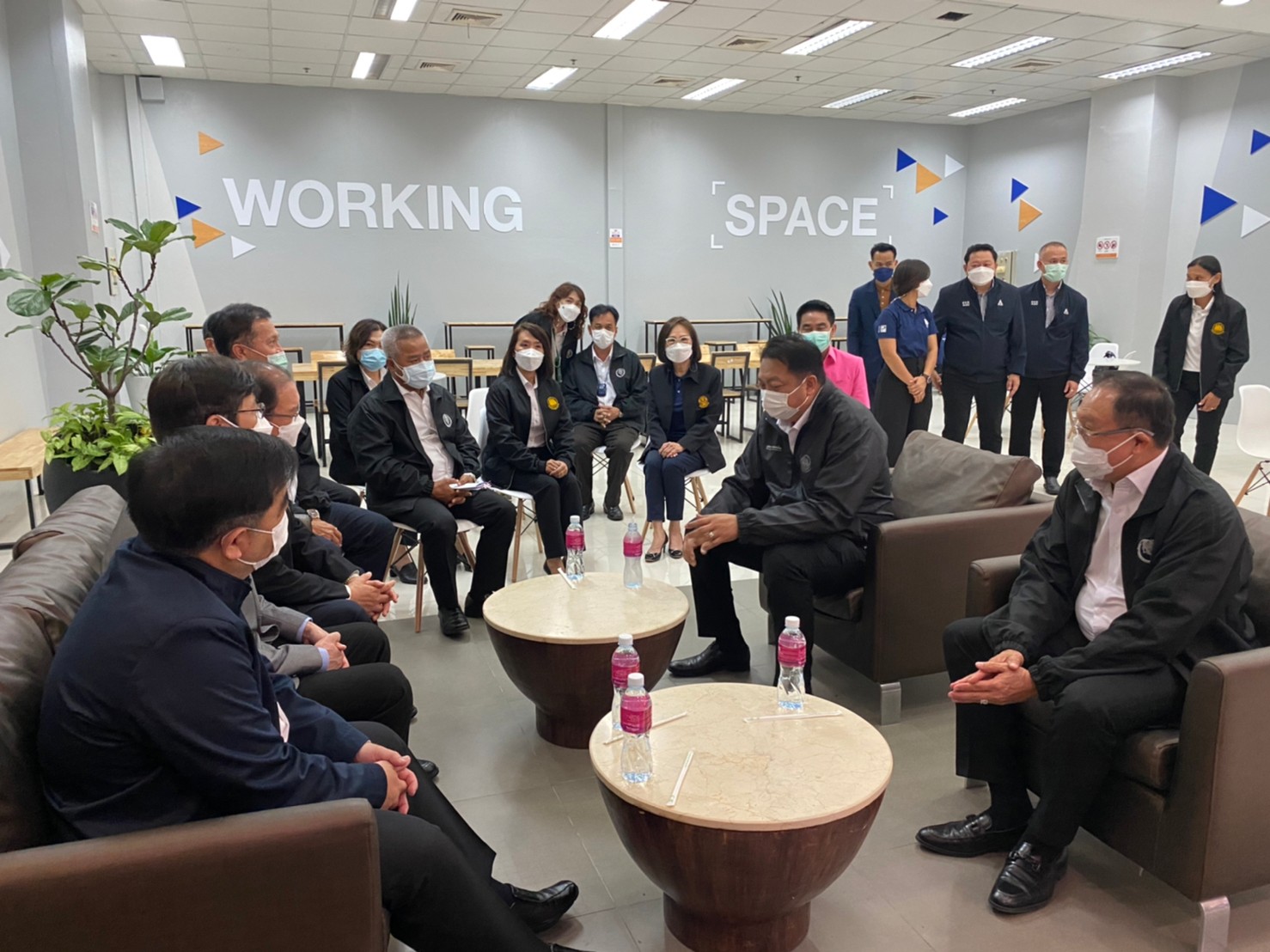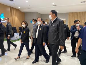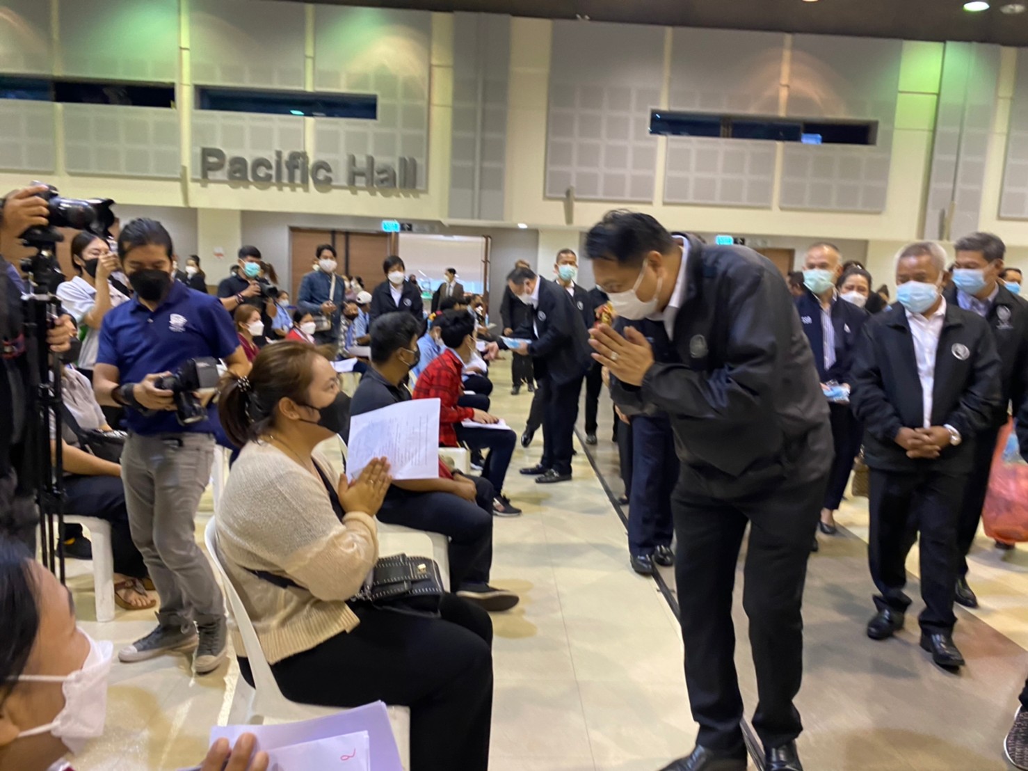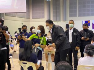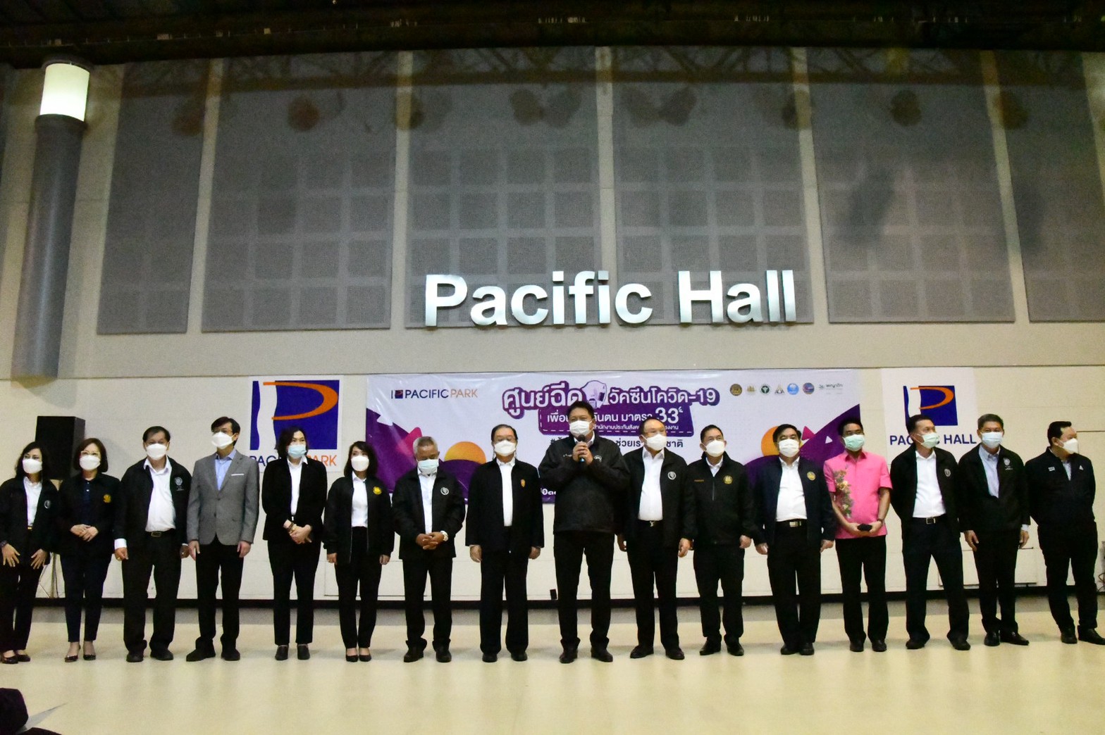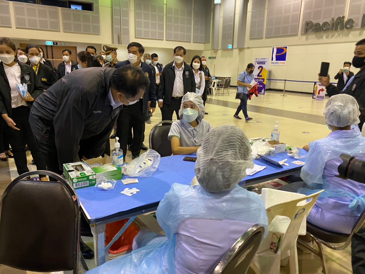 วันศุกร์ที่ 21 มกราคม 2565 เวลา 13.00 น. นายสุชาติ ชมกลิ่น รัฐมนตรีว่าการกระทรวงแรงงาน พร้อมด้วยผู้บริหารระดับสูงกระทรวงแรงงานลงพื้นที่ตรวจเยี่ยมและให้กำลังใจผู้ประกันตนมาตรา 33 ที่มาฉีดวัคซีนโควิด-19 เข็ม 3 (Booster Dose) ณ ศูนย์ฉีดวัคซีนโควิด-19 เพื่อผู้ประกันตน ม. 33 ณ ศูนย์การค้าแปซิฟิค พาร์ค ศรีราชา โดยมี นายนิติ วิวัฒน์วานิช รองผู้ว่าราชการจังหวัดชลบุรี นายสมบูรณ์ วรปัญญาสกุล กรรมการผู้จัดการศูนย์การค้าแปซิฟิค พาร์ค ศรีราชา นางสาวกรจิรัฏฐ์ พงจันทร์ศธร แรงงานจังหวัดชลบุรี นายสราวุธ สุขสวรรค์ ประกันสังคมจังหวัดชลบุรี นายสมศักดิ์ โยชน์เมืองไพร หัวหน้าสำนักงานประกันสังคมจังหวัดชลบุรี สาขา ศรีราชา และนายเบญจรงค์ ว่องจรรยากุล หัวหน้าสำนักงานประกันสังคมจังหวัดชลบุรี สาขาบางละมุง พร้อมด้วยหัวหน้าส่วนราชการสังกัดกระทรวงแรงงานจังหวัดชลบุรีร่วมให้การต้อนรับโดยพร้อมเพรียงกัน