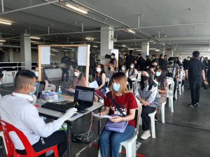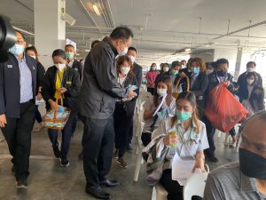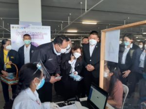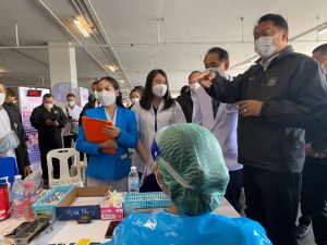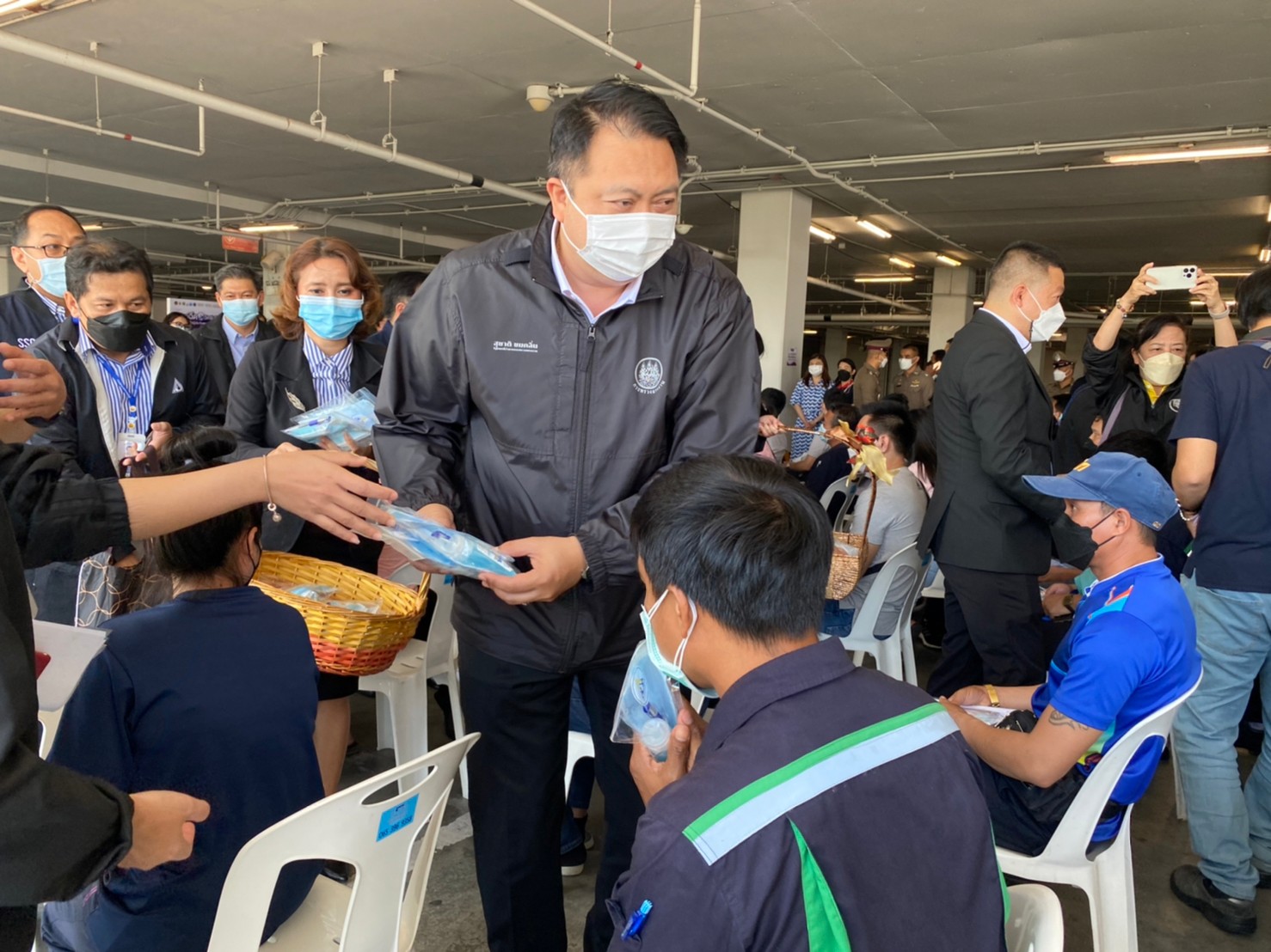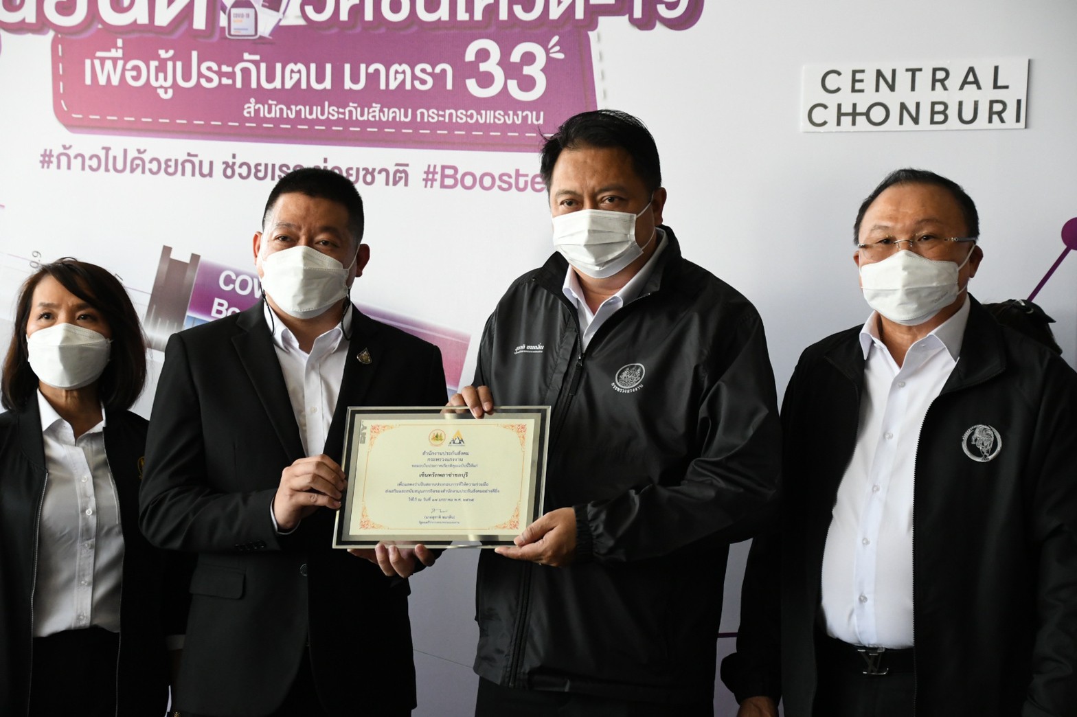 วันศุกร์ที่ 21 มกราคม 2565 เวลา 10.00น. นายสุชาติ ชมกลิ่น รัฐมนตรีว่าการกระทรวงแรงงาน พร้อมด้วยผู้บริหารระดับสูงกระทรวงแรงงานลงพื้นที่ตรวจเยี่ยมและให้กำลังใจผู้ประกันตนมาตรา 33 ที่มาฉีดวัคซีนโควิด-19 เข็ม 3 (Booster Dose) ณ ศูนย์ฉีดวัคซีนโควิด-19 เพื่อผู้ประกันตน ม. 33 ศูนย์การค้าเซ็นทรัลพลาซ่า จังหวัดชลบุรี โดยมี นายนิติ วิวัฒน์วานิช รองผู้ว่าราชการจังหวัดชลบุรี นายเศรษฐวุฒิ ทัตสุระ ผู้จัดการทั่วไปศูนย์การค้า นางสาวกรจิรัฏฐ์ พงจันทร์ศธร แรงงานจังหวัดชลบุรี นายสราวุธ สุขสวรรค์ ประกันสังคมจังหวัดชลบุรี พร้อมด้วยหัวหน้าส่วนราชการสังกัดกระทรวงแรงงานจังหวัดชลบุรีร่วมให้การต้อนรับโดยพร้อมเพรียงกัน