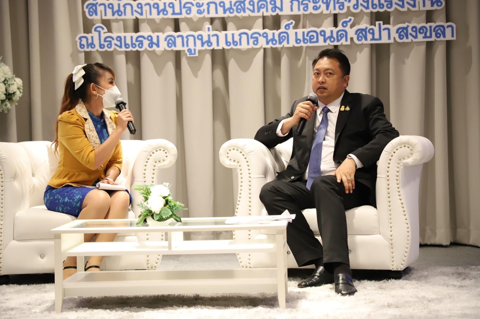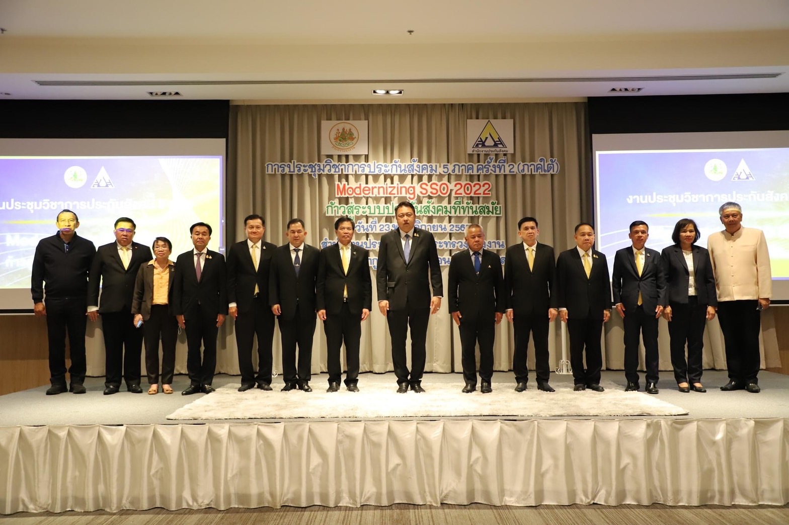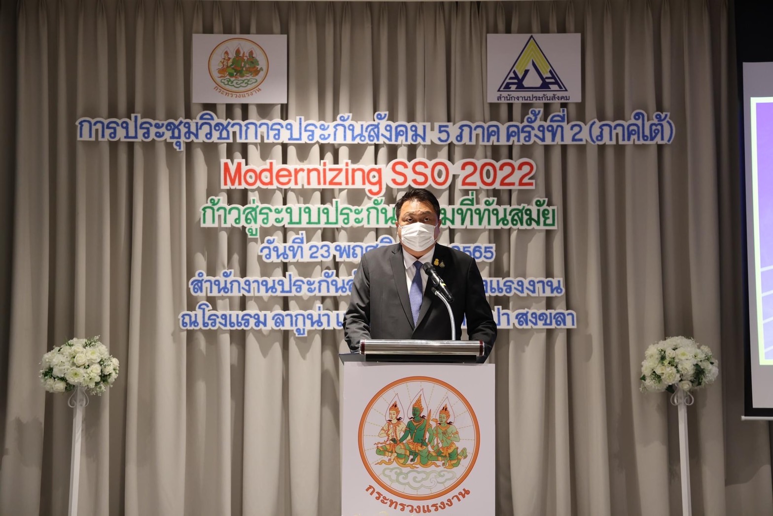 วันพุธที่ 23 พฤศจิกายน 2565 นายสุชาติ ชมกลิ่น รัฐมนตรีว่าการกระทรวงแรงงาน เป็นประธานในพิธีเปิด การประชุมวิชาการประกันสังคม 5 ภาค ครั้งที่ 2 (ภาคใต้) Modernizing SSO 2022 ก้าวสู่ระบบประกันสังคมที่ทันสมัย โดยมี ผู้บริหารระดับสูงกระทรวงแรงงาน นางสุจินดา บุญแอ แรงงานจังหวัดสงขลา พร้อมด้วยหัวหน้าส่วนราชการสังกัดกระทรวงแรงงานจังหวัดสงขลา ร่วมให้การต้อนรับ ทั้งนี้ บัณฑิตแรงงานจังหวัดสงขลา และอาสาสมัครแรงงานจังหวัดสงขลา ร่วมจัดนิทรรศการกลุ่มอาชีพที่ส่งเสริมการประกอบอาชีพอิสระ ณ โรงแรม ลากูน่า แกรนด์ แอนด์ สปา สงขลา