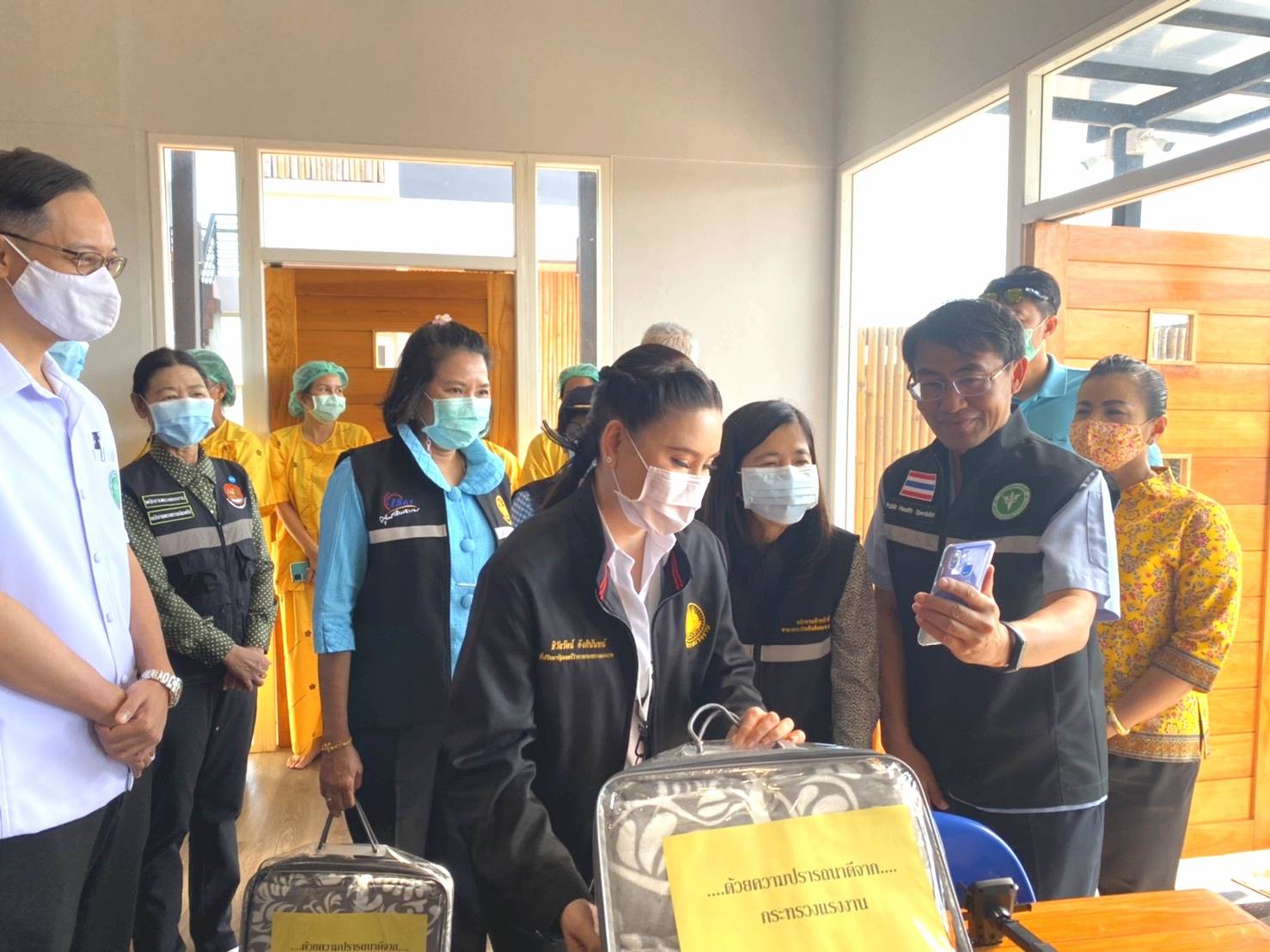 นายสุชาติ ชมกลิ่น รัฐมนตรีว่าการกระทรวงแรงงาน มอบหมายให้ ที่ปรึกษารัฐมนตรีว่าการกระทรวงแรงงาน ออกเยี่ยมให้กำลังใจบุคลากรทางการแพทย์ที่ปฏิบัติหน้าที่ ดูแลผู้ประกันตนที่เสี่ยงติดเชื้อโควิด – 19 ที่จังหวัดเพชรบุรี เพื่อให้กำลังใจพร้อมแนะนำสิทธิประโยชน์ที่ผู้ประกันตนจะได้รับ