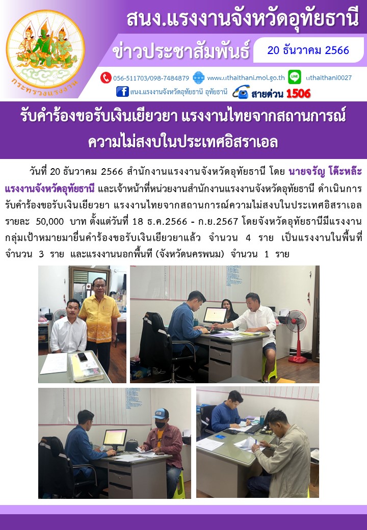 สรจ.อุทัยธานี รับคำร้องขอรับเงินเยียวยา แรงงานไทยจากสถานการณ์ความไม่สงบในประเทศอิสราเอล