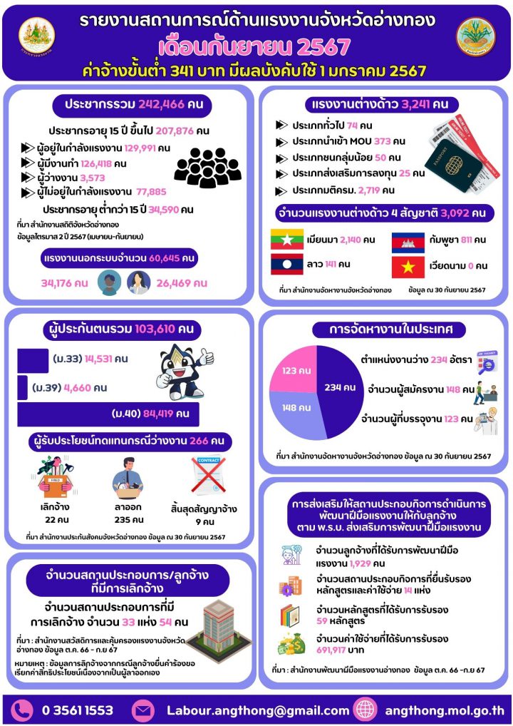 สรจ.อ่างทอง รายงานสถานการณ์ด้านแรงงานจังหวัดอ่างทองเดือนกันยายน 2567