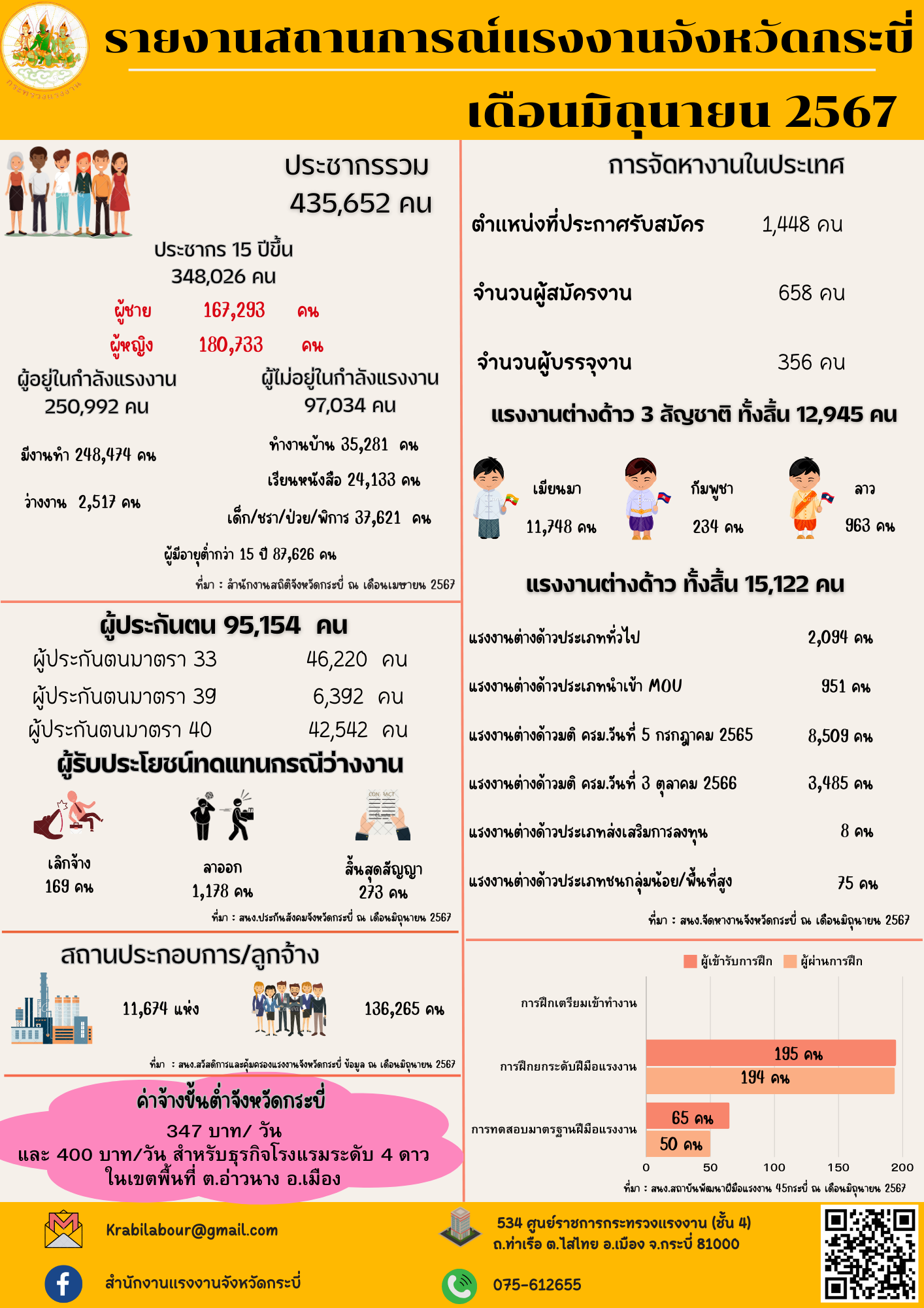 รายงานสถานการณ์แรงงานจังหวัดกระบี่ ประจำเดือนมิถุนายน 2567