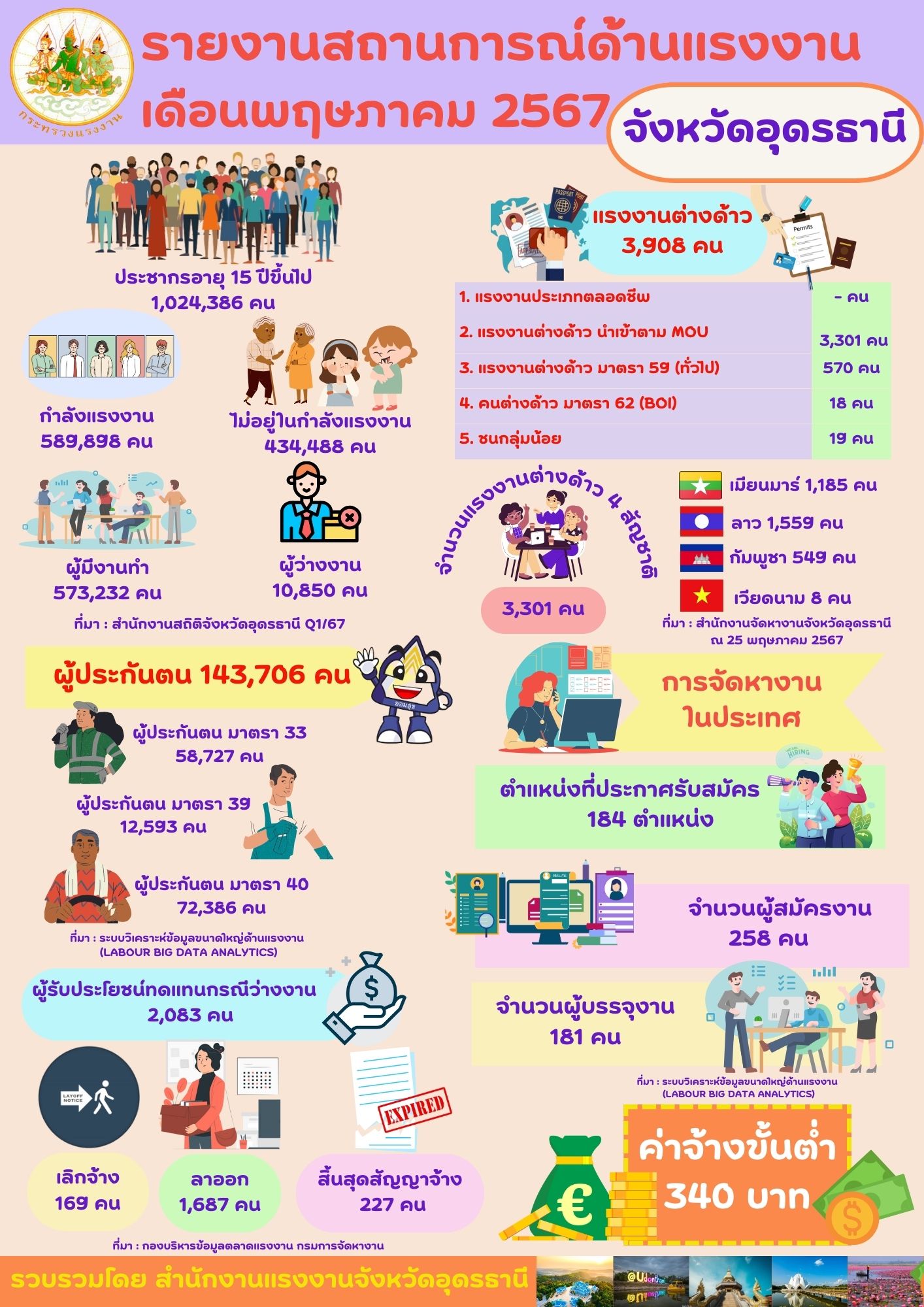รายงานสถานการณ์แรงงานจังหวัดอุดรธานี ประจำเดือนพฤษภาคม 2567