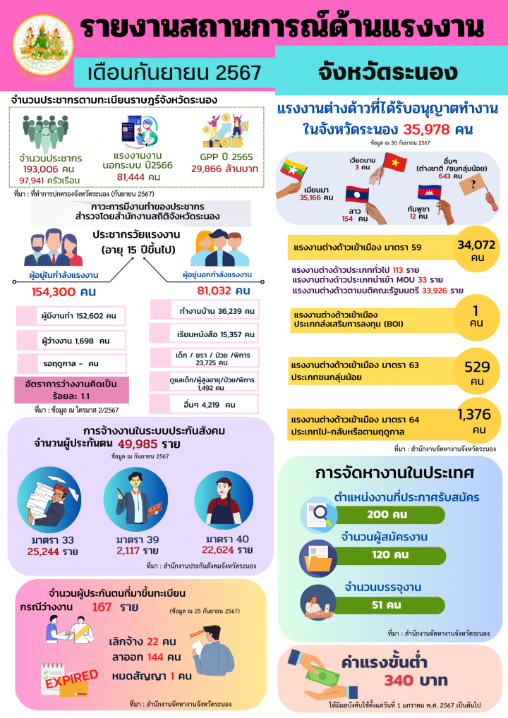 สรจ.ระนอง รายงานสถานการณ์และดัชนีชี้วัดภาวะแรงงานจังหวัด เดือนกันยายน 2567