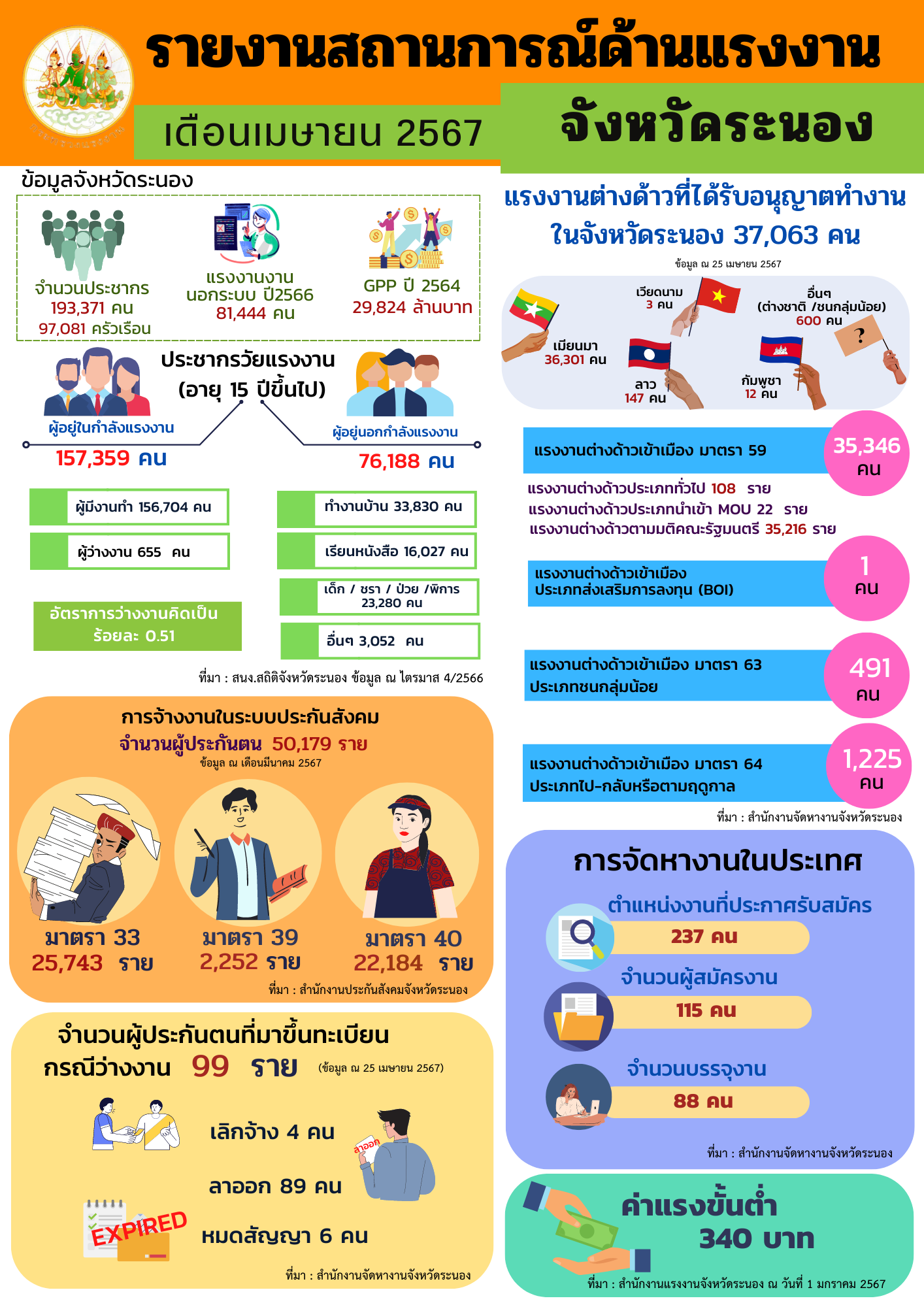 รายงานสถานการณ์และดัชนีชี้วัดภาวะแรงงานจังหวัด เดือนเมษายน 2567