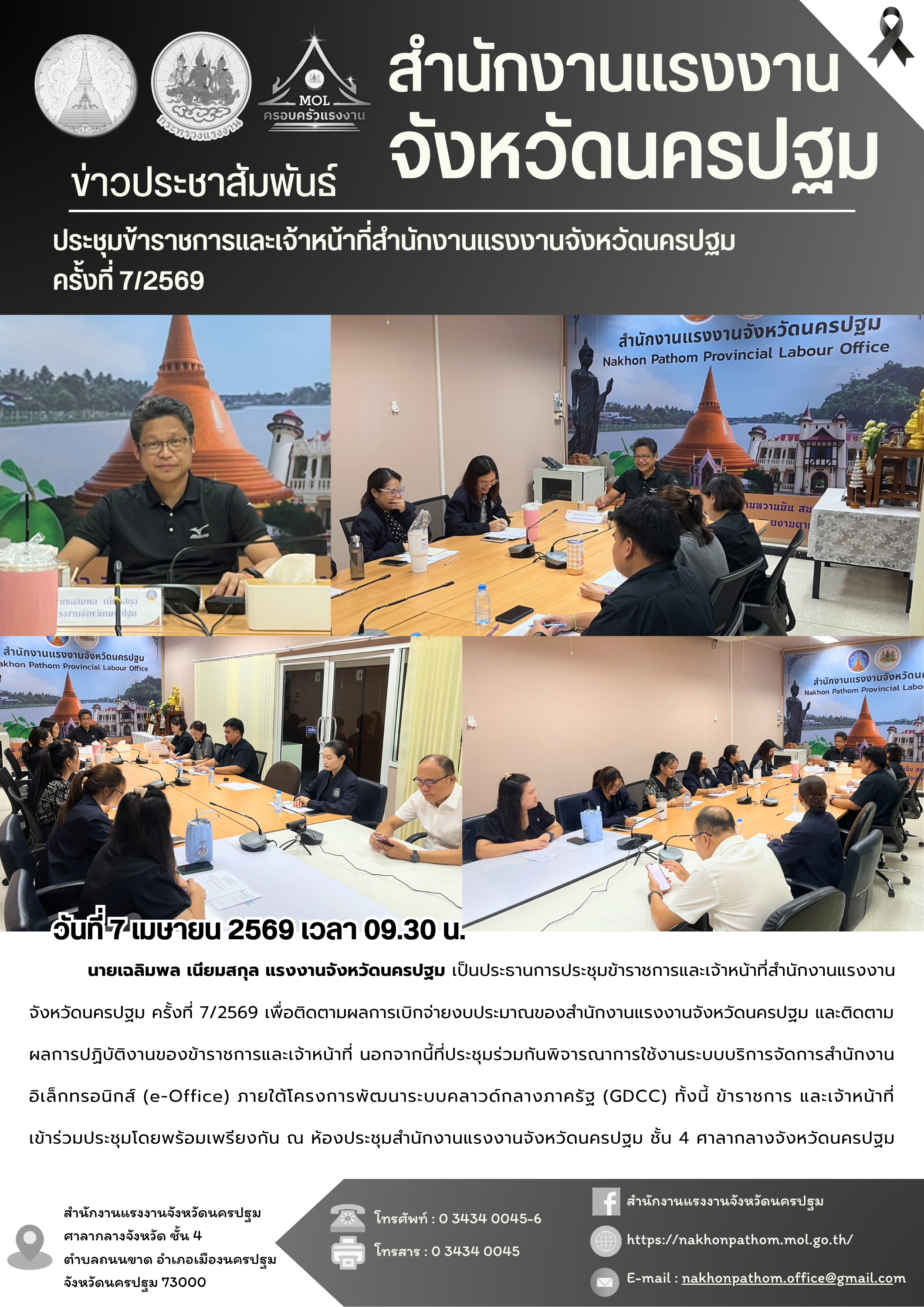 สรจ.นครปฐม ประชุมข้าราชการและเจ้าหน้าที่สำนักงานแรงงานจังหวัดนครปฐม ครั้งที่ 7/2569