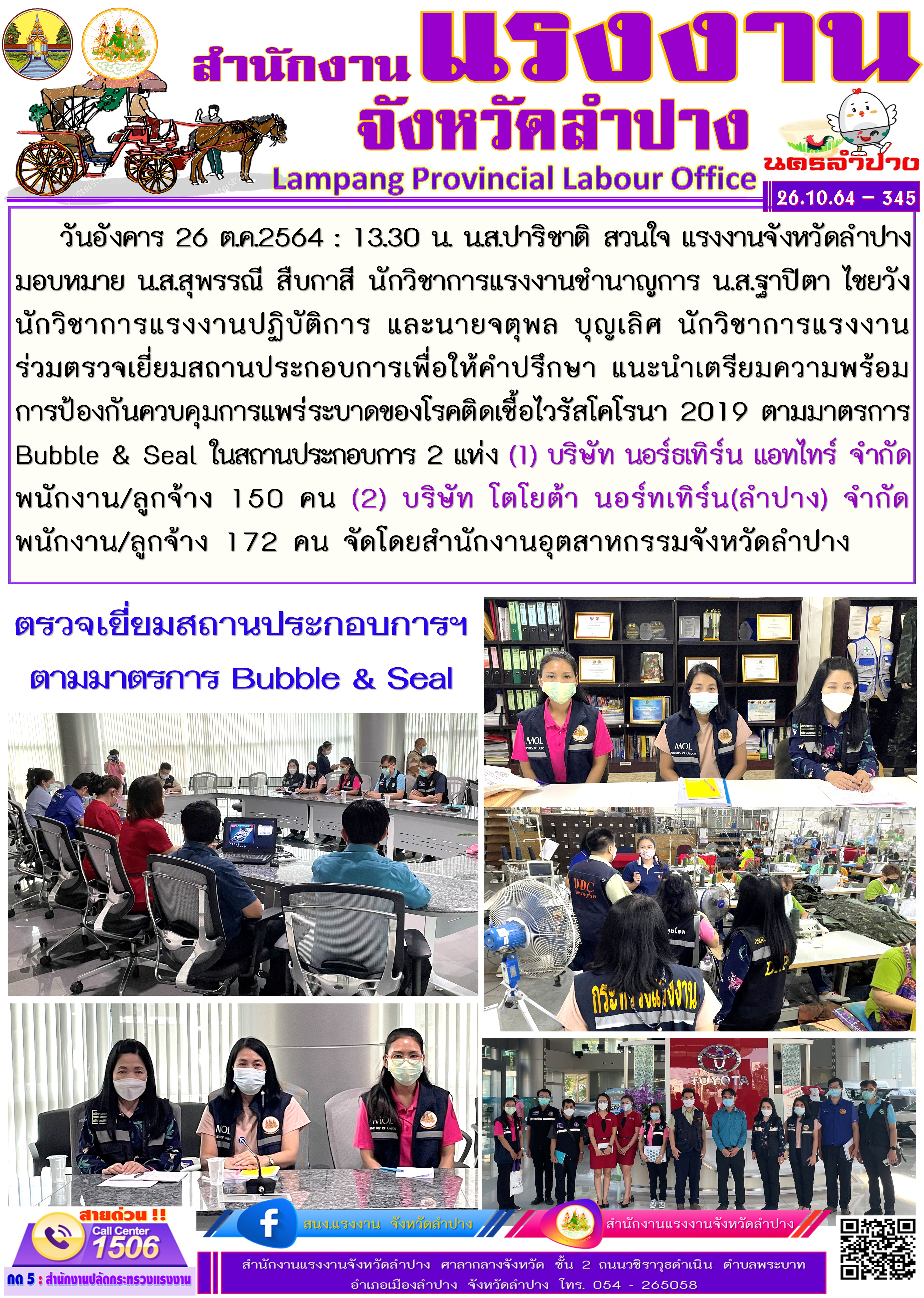 สรจ.ลำปาง ร่วมตรวจเยี่ยมสถานประกอบการฯ ตามมาตรการ Bubble & Seal