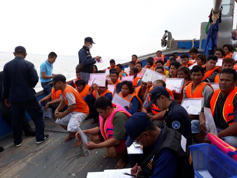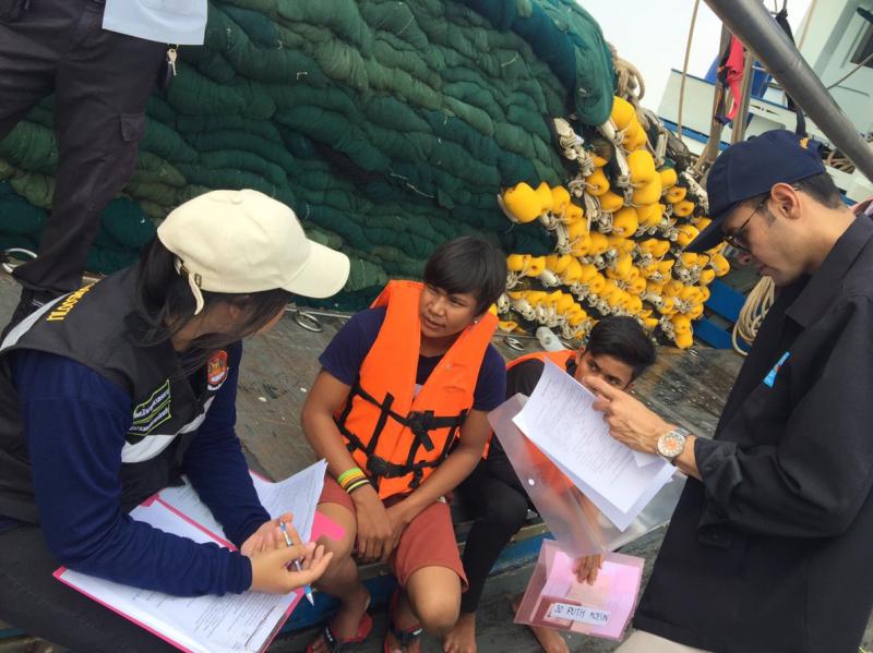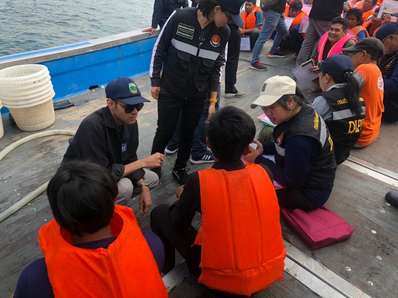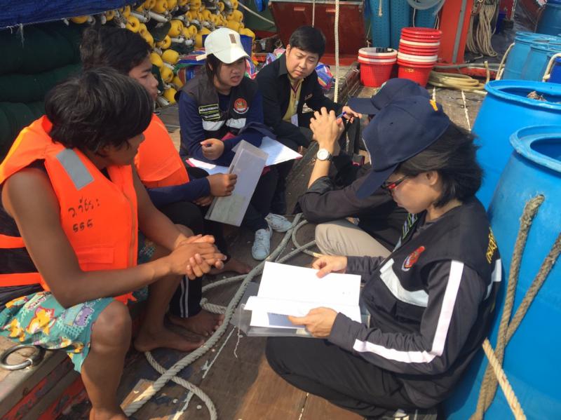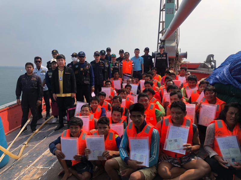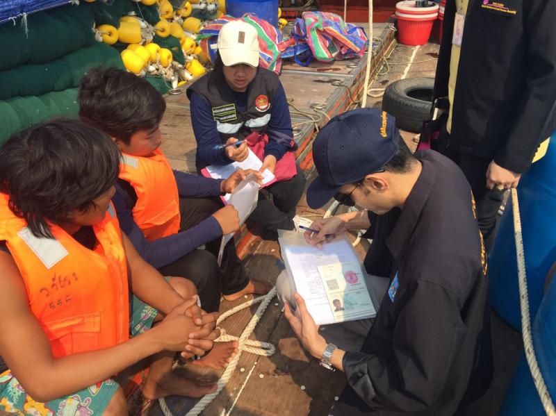วันจันทร์ที่ 14 มกราคม 2562 เวลา 09.00 น. นางสาวกรจิรัฏฐ์ พงจันทร์ศธร แรงงานจังหวัดระยอง มอบหมายให้ นายวุฒิชัย บุญถนอม นักวิชาการแรงงาน ร่วมบูรณาการตรวจแรงงานในกิจการประมงทะเลกับทีมสหวิชาชีพศูนย์บริหารจัดการแรงงานประมงจังหวัดระยอง โดยตรวจสภาพการจ้าง สภาพการทำงานตามโครงการจัดการปัญหาแรงงานต่างด้าวและการค้ามนุษย์ด้านแรงงานในกิจการประมงทะเลแบบบูรณาการ ณ บริเวณพื้นที่ทะเลจังหวัดระยอง พบเรือประมงทะเลจำนวน 2 ลำได้แก่ 1) ว.วัชระ 555 2) พิชิตสมุทร 6 มีลูกจ้างรวมทั้งหมด 84 คน สัญชาติไทย 4 คน กัมพูชา 80 คน จากการตรวจไม่พบการใช้แรงงานเด็ก แรงงานบังคับ หรือการกระทำผิดทางด้านกฎหมายแรงงานแต่อย่างใด