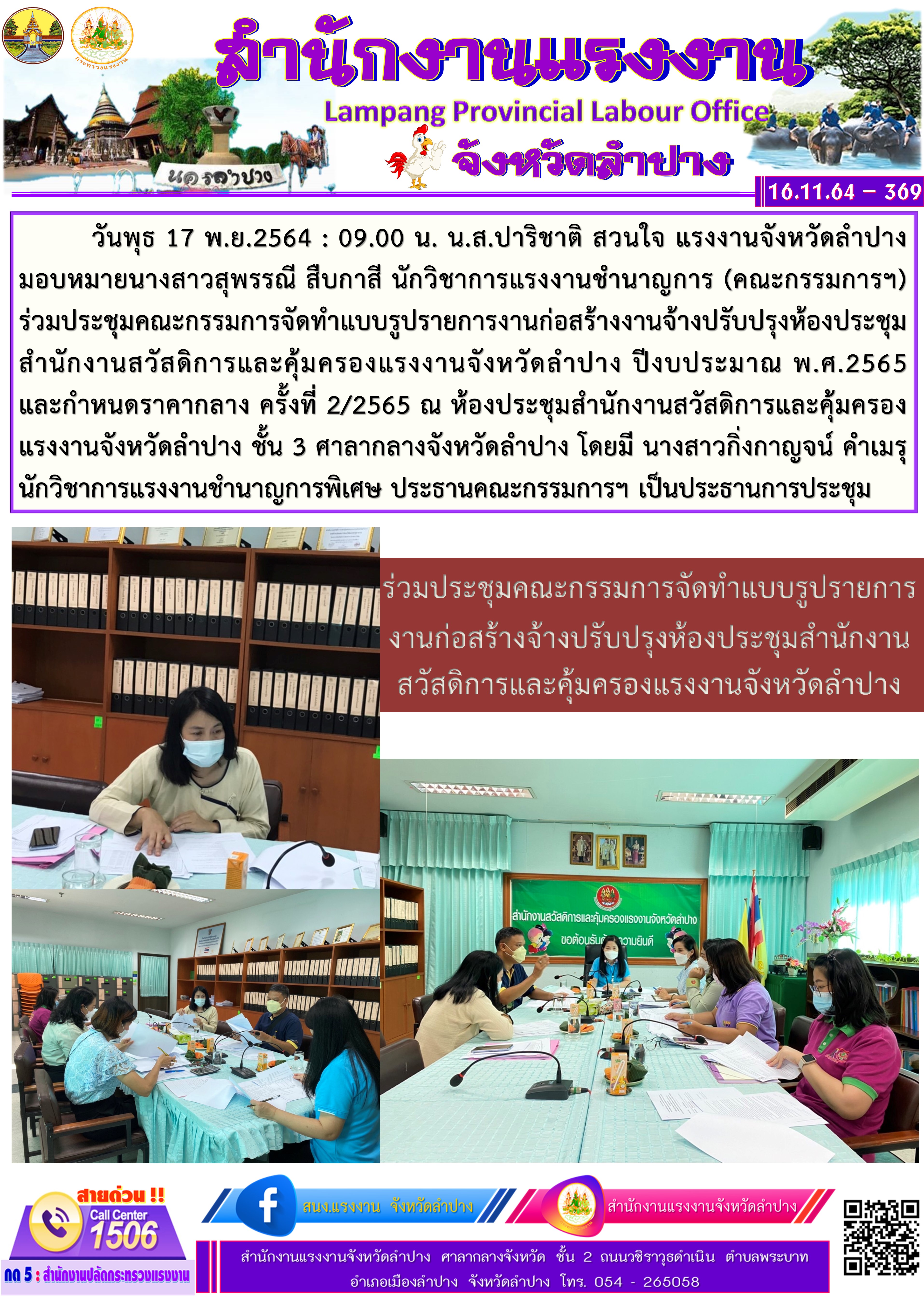 สรจ.ลำปาง ร่วมประชุมคณะกรรมการจัดทำแบบรูปรายการงานก่อสร้างจ้างปรับปรุงห้องประชุมสำนักงานสวัสดิการและคุ้มครองแรงงานจังหวัดลำปาง