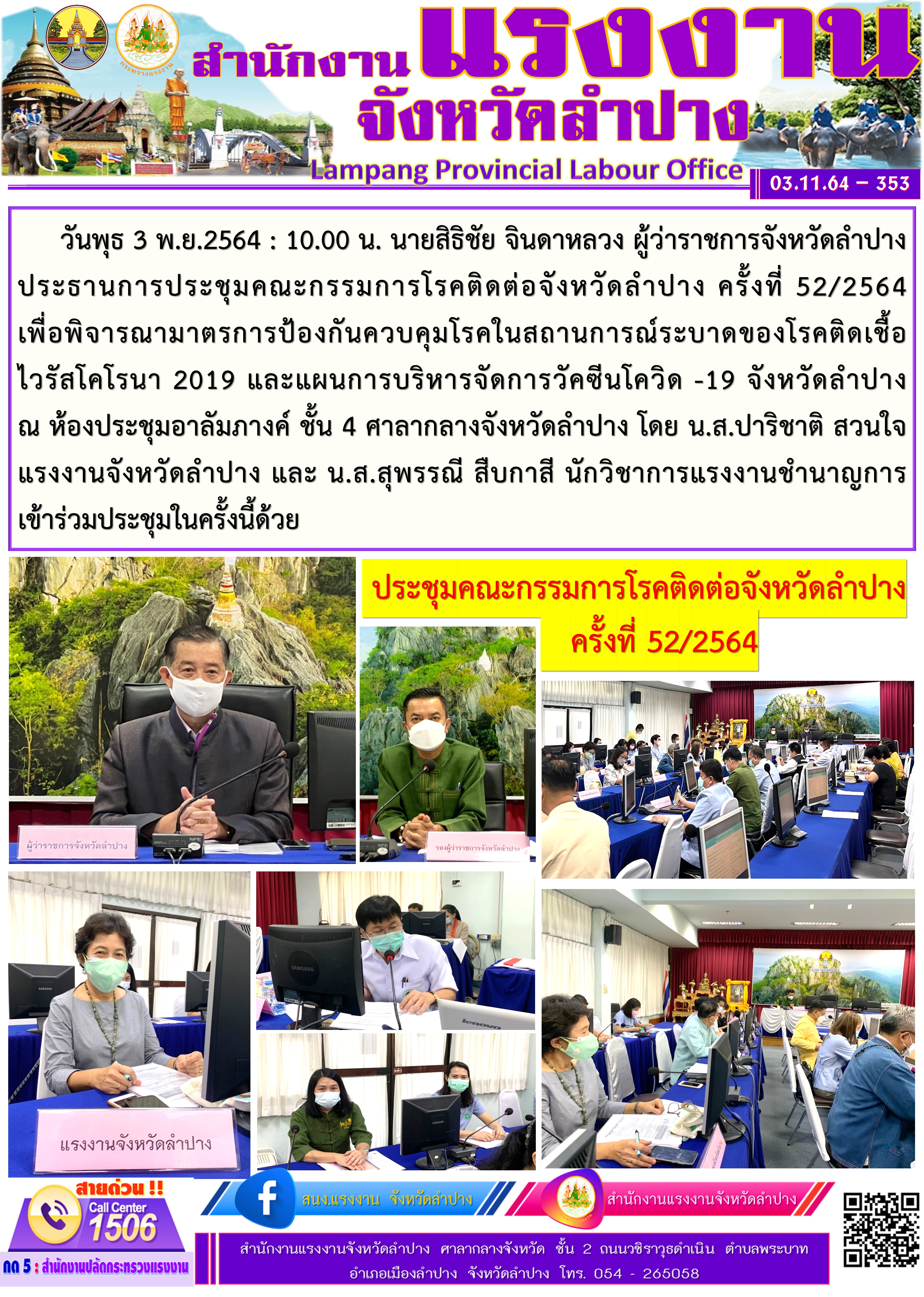 ร่วมประชุมคณะกรรมการโรคติดต่อจังหวัดลำปาง ครั้งที่ 52/2564