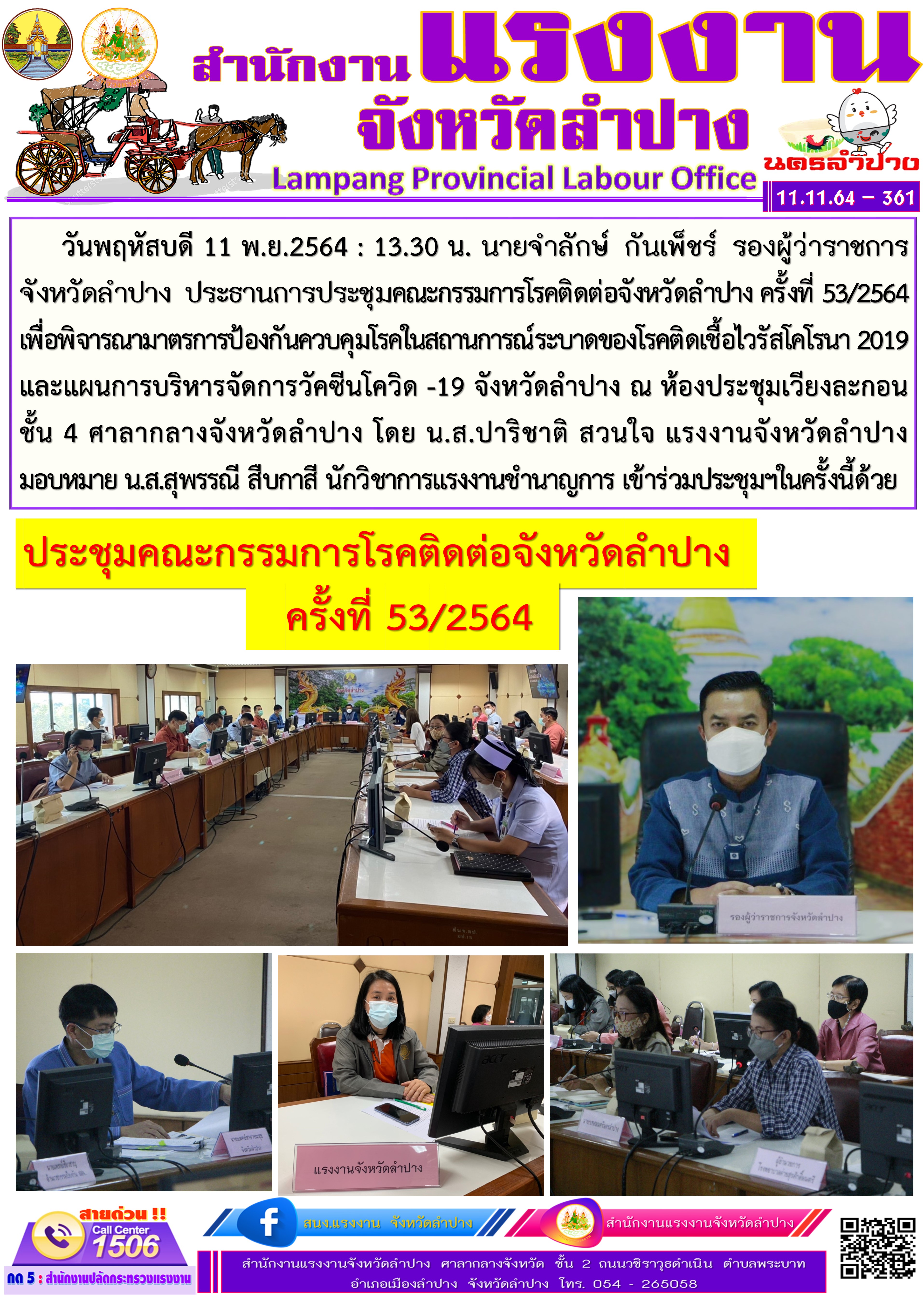 สรจ.ลำปาง ร่วมประชุมคณะกรรมการโรคติดต่อจังหวัดลำปาง ครั้งที่ 53/2564