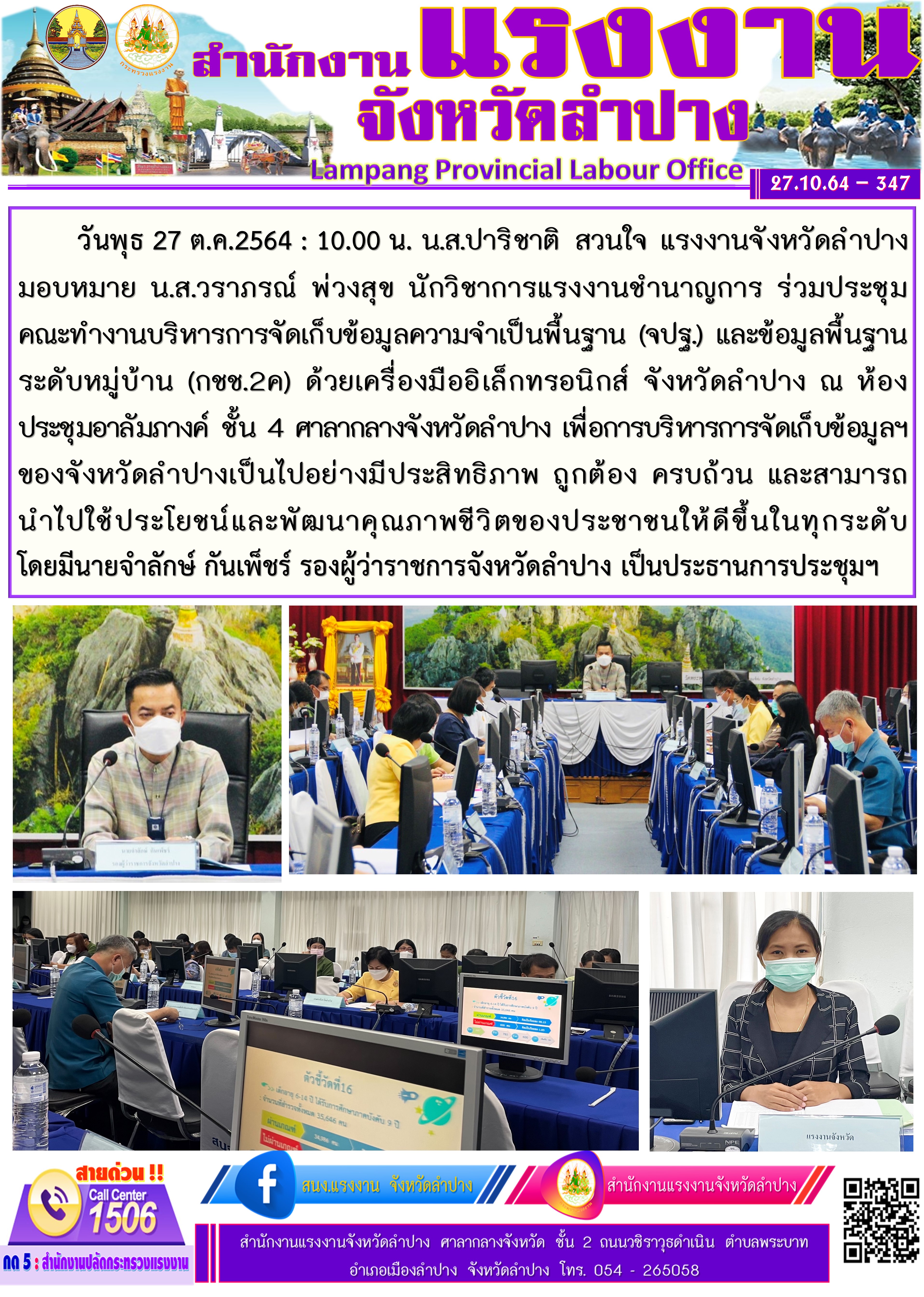 สรจ.ลำปาง ร่วมประชุมคณะทำงานบริหารการจัดเก็บข้อมูลความจำเป็น (จปฐ.) (กชช.2ค)