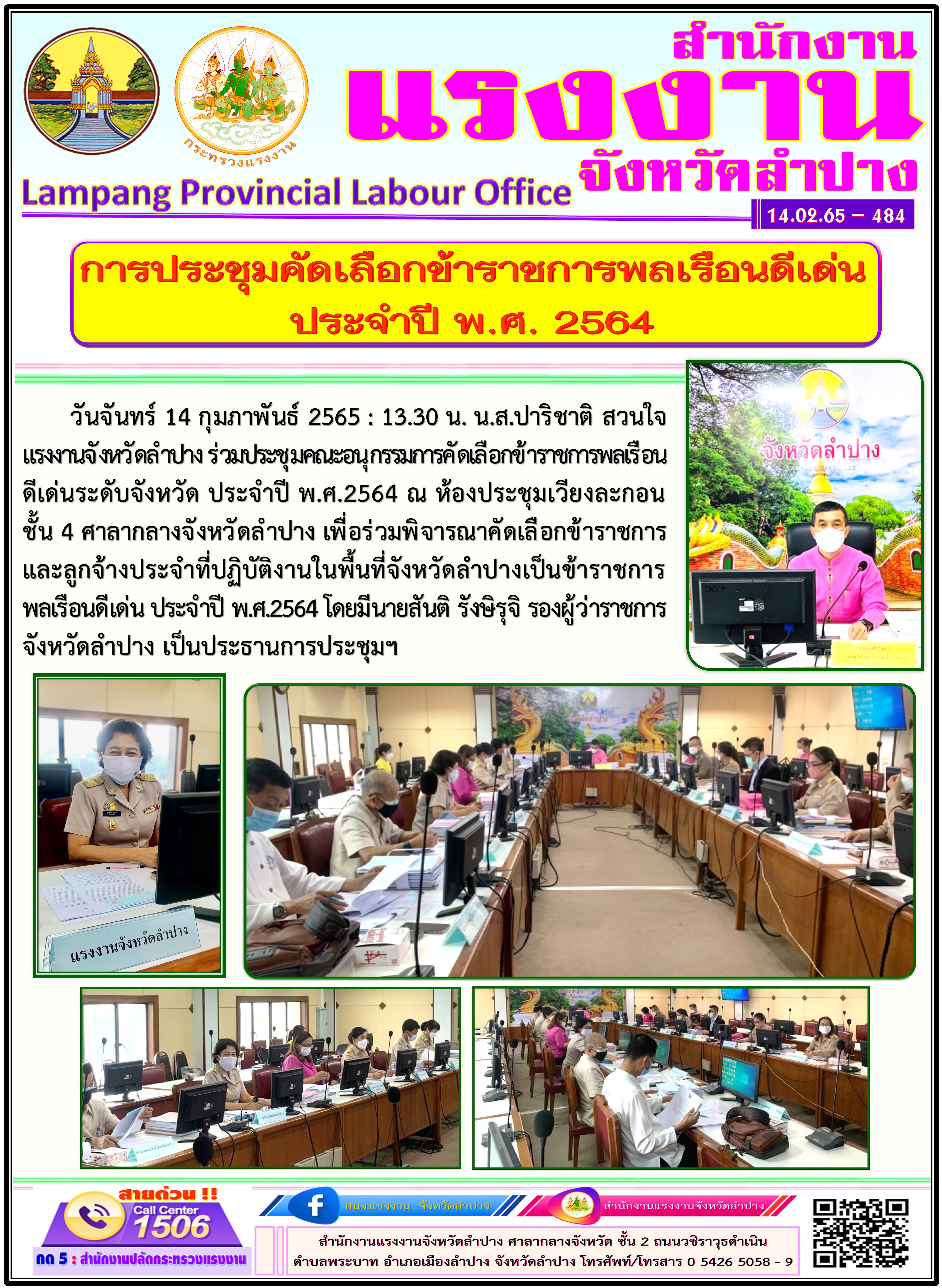 สรจ.ลำปาง ร่วมประชุมคณะอนุกรรมการคัดเลือกข้าราชการพลเรือนดีเด่นระดับจังหวัด ประจำปี พ.ศ.2564