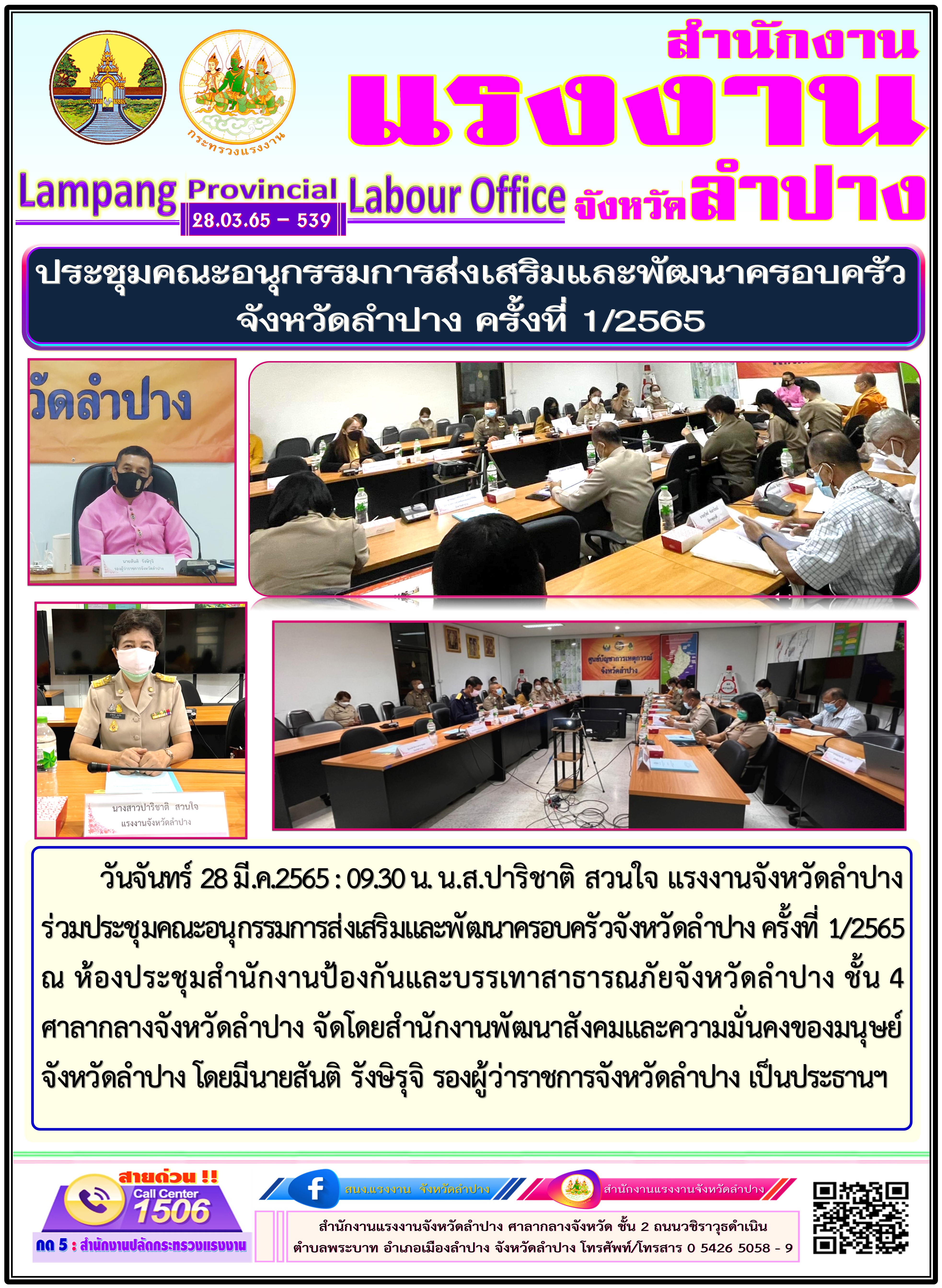 สรจ.ลำปาง ร่วมประชุมคณะอนุกรรมการส่งเสริมและพัฒนาครอบครัวจังหวัดลำปาง ครั้งที่ 1/2565