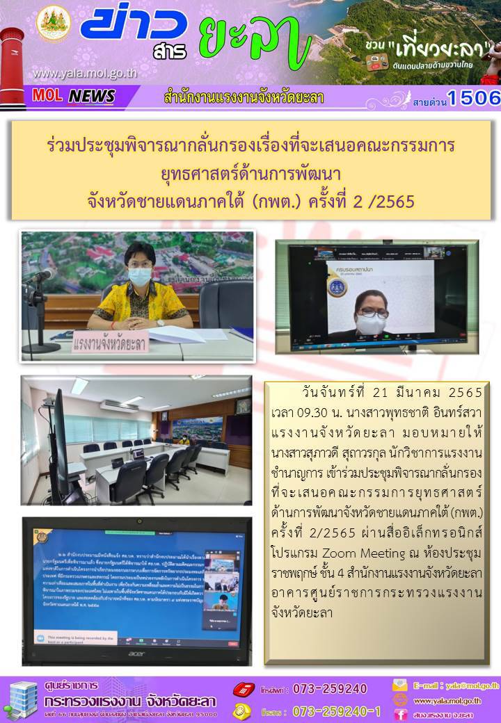 การประชุมพิจารณากลั่นกรองเรื่องที่จะเสนอคณะกรรมการยุทธศาสตร์ด้านการพัฒนาจังหวัดชายแดนภาคใต้ (กพต.) ครั้งที่ 2/2565