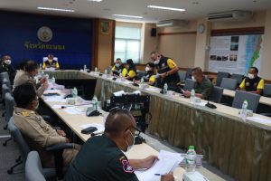 สรจ.ระนอง ร่วมประชุมเพื่อตรวจสอบการจับกุมแรงงานต่างด้าวและผู้หลบหนีเข้าเมืองโดยผิดกฎหมาย