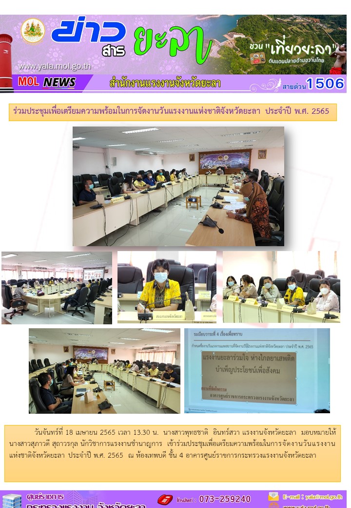 ร่วมประชุมเพื่อเตรียมความพร้อมในการจัดงานวันแรงงานแห่งชาติจังหวัดยะลา ประจำปี พ.ศ. 2565