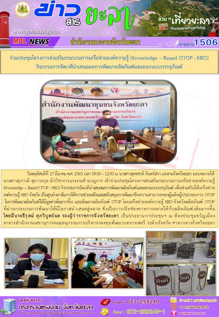 ร่วมประชุมโครงการส่งเสริมกระบวนการเครือข่ายองค์ความรู้ (Knowledge – Based OTOP : KBO) กิจกรรมการจัดเวทีนำเสนอผลการพัฒนาผลิตภัณฑ์และออกแบบบรรจุภัณฑ์