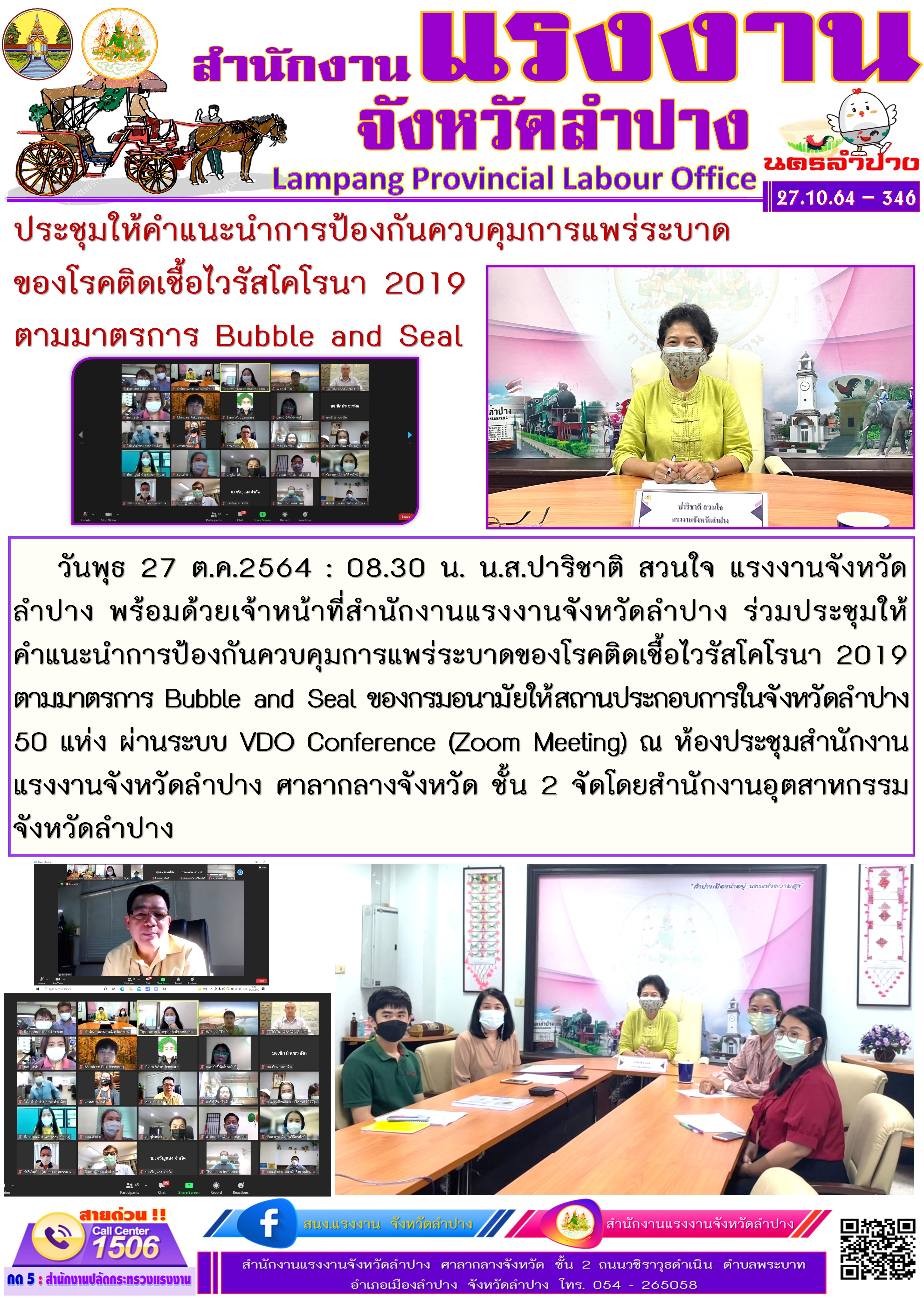 สรจ.ลำปาง ร่วมประชุมให้คำแนะนำการป้องกันควบคุมการแพร่ระบาดของโรคติดเชื้อไวรัสโคโรนา 2019 ตามมาตรการ Bubble and Seal