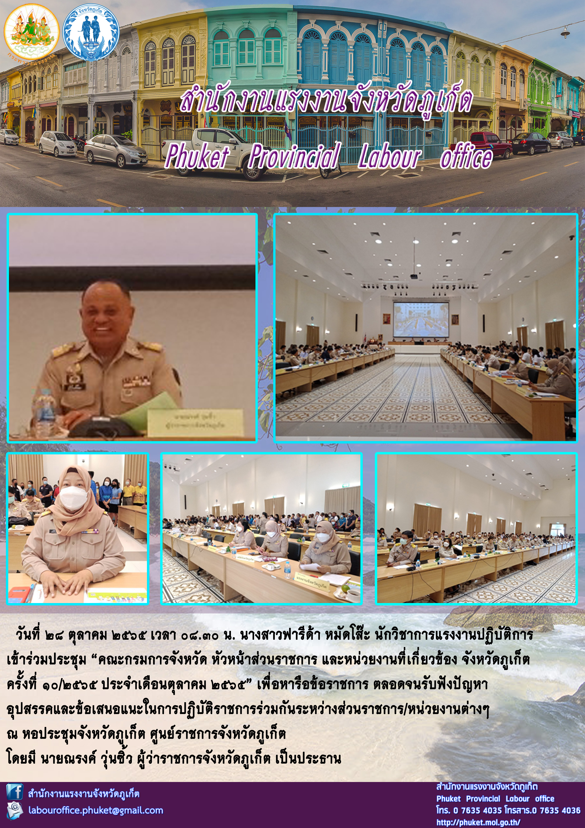 ร่วมประชุม “คณะกรมการจังหวัด หัวหน้าส่วนราชการ และหน่วยงานที่เกี่ยวข้องจังหวัดภูเก็ต ครั้งที่ 10/2565 ประจำเดือนตุลาคม 2565”