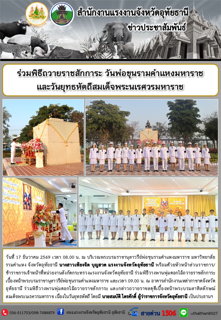 ร่วมพิธีถวายราชสักการะ วันพ่อขุนรามคำแหงมหาราช และวันยุทธหัตถีสมเด็จพระนเรศวรมหาราช
