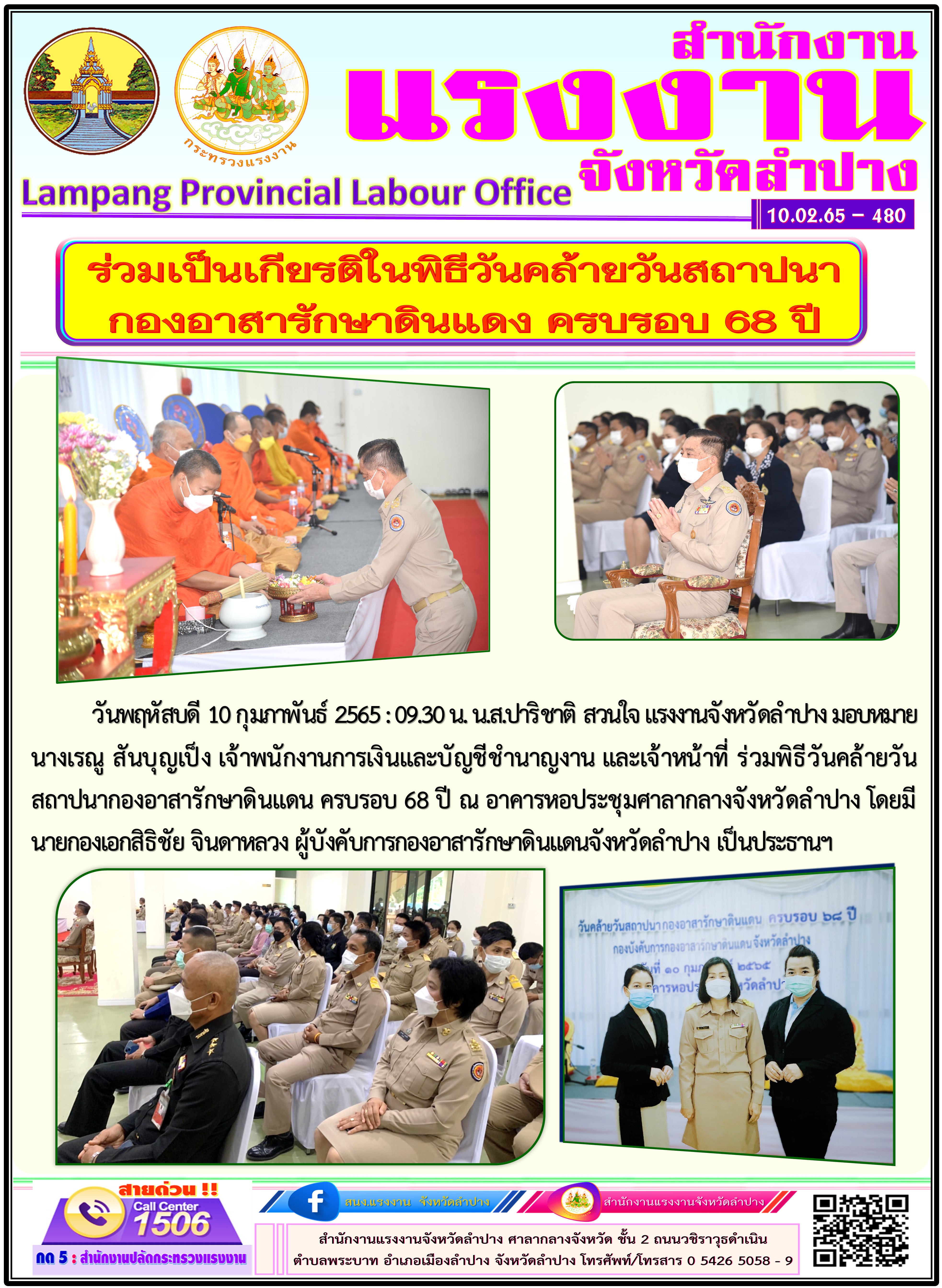 สรจ.ลำปาง ร่วมพิธีวันคล้ายวันสถาปนากองอาสารักษาดินแดน ครบรอบ 68 ปี