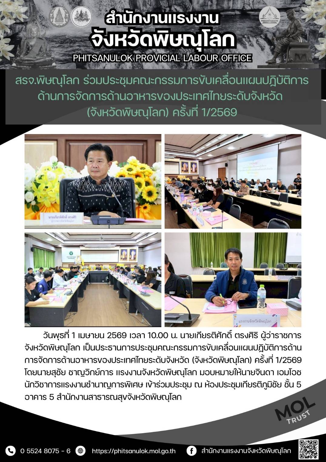 สรจ.พิษณุโลก ร่วมประชุมคณะกรรมการขับเคลื่อนแผนปฏิบัติการด้านการจัดการด้านอาหารของประเทศไทยระดับจังหวัด (จังหวัดพิษณุโลก) ครั้งที่ 1/2569
