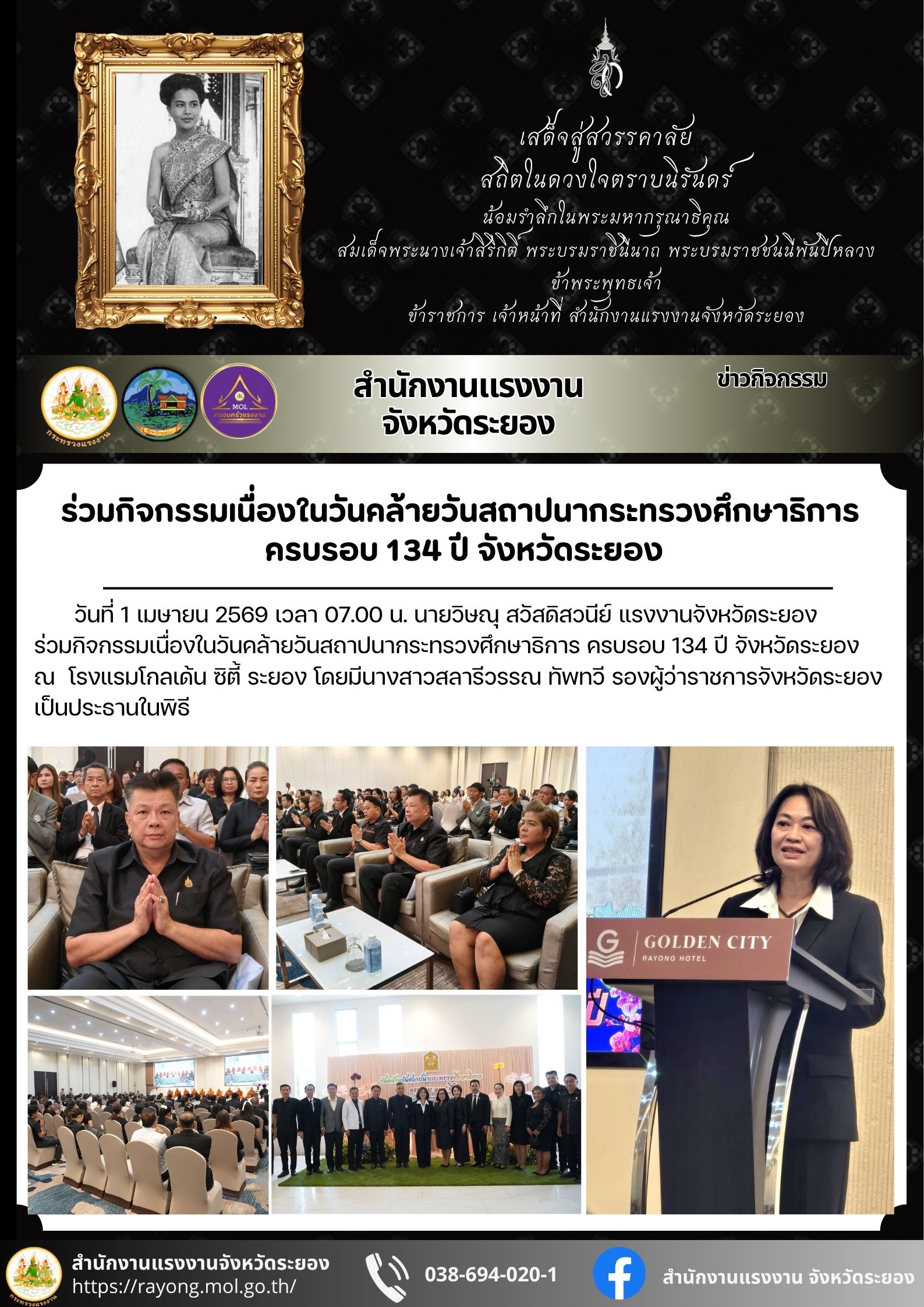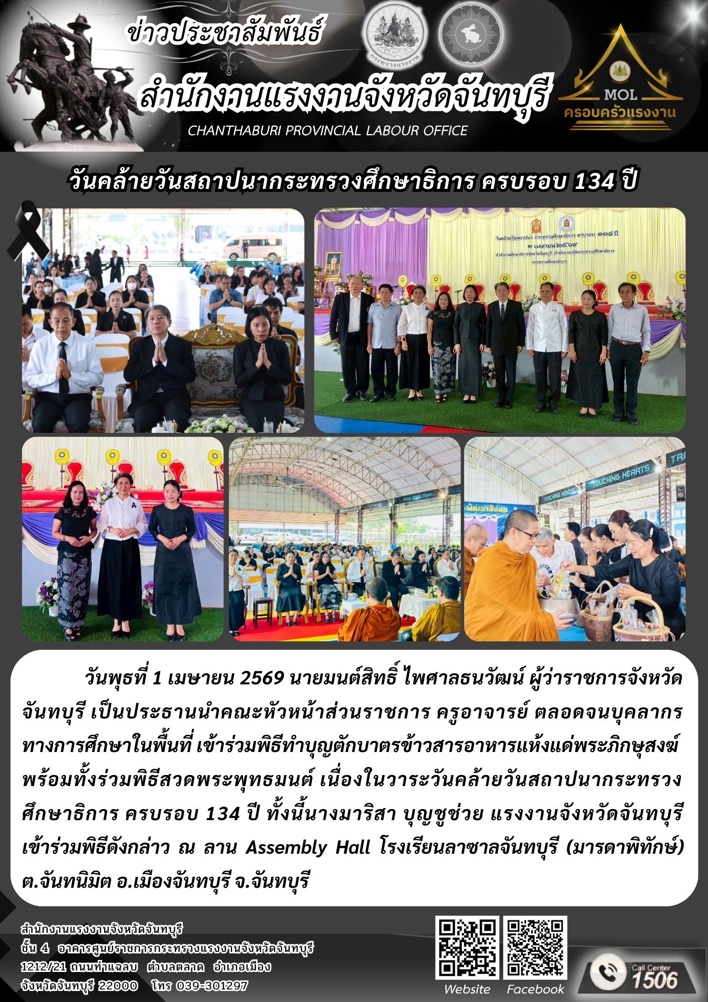 แรงงานจังหวัดจันทบุรี ร่วมวันคล้ายวันสถาปนากระทรวงศึกษาธิการ ครบรอบ 134 ปี