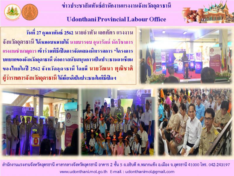 ร่วมพิธีเปิดการจัดนิทรรศการ “โครงการบทบาทของจังหวัดอุดรธานี ต่อการสนับสนุนการเป็นประธานอาเซียนของไทยในปี 2562 จังหวัดอุดรธานี”