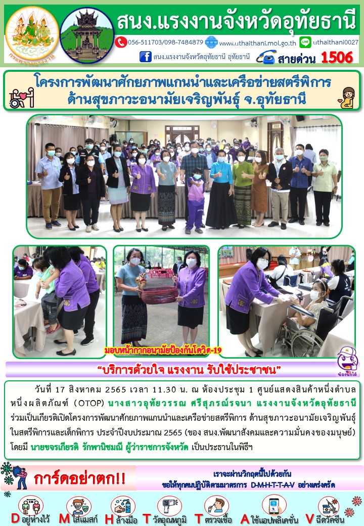 สรจ.อุทัยธานี ร่วมพิธีเปิดโครงการพัฒนาศักยภาพแกนนำและเครือข่ายสตรีพิการฯ