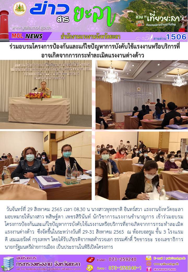 ร่วมอบรมโครงการป้องกันและแก้ไขปัญหาการบังคับใช้แรงงานหรือบริการที่อาจเกิดจากการกระทำละเมิดแรงงานต่างด้าว